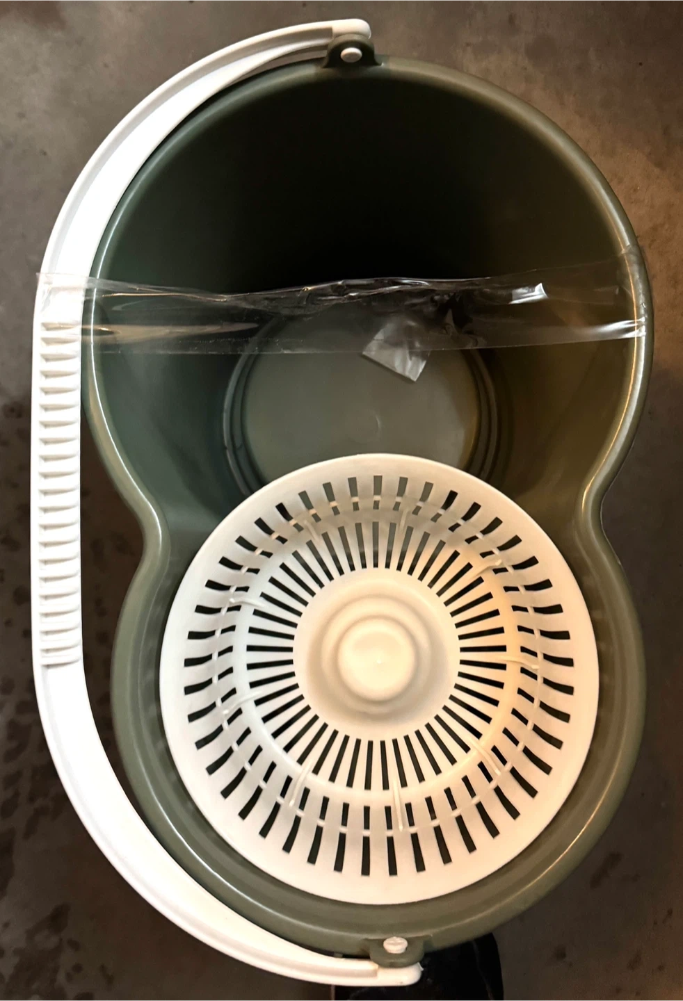 Selling a spin mop bucket with a microfiber mop head. It looks to be in good condition and ready to help keep your floors clean!