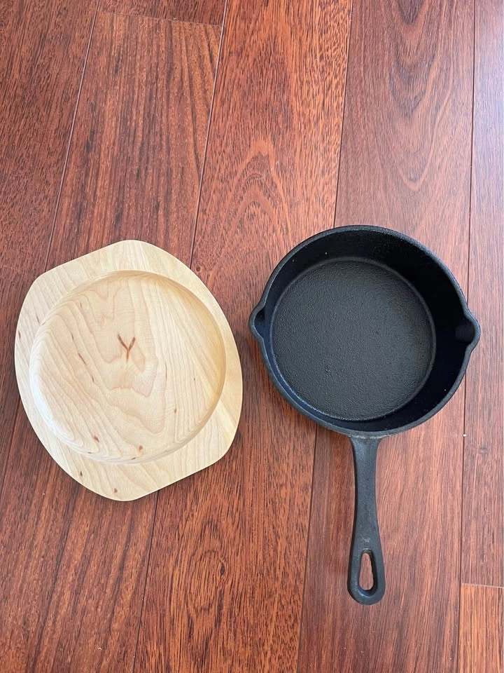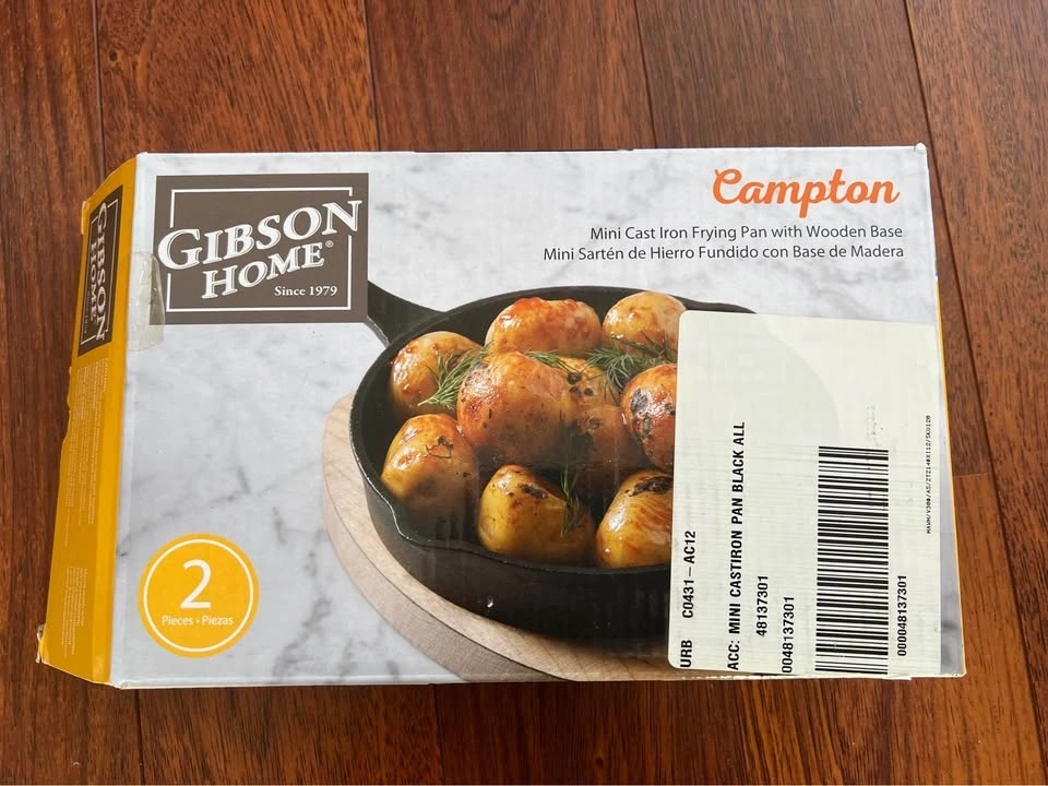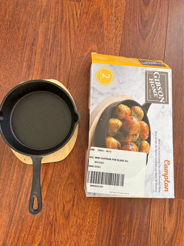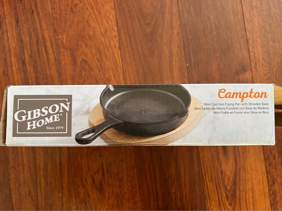 Gibson Home Mini Cast Iron Frying Pan + Wood Serve Base – 5.3” NIB