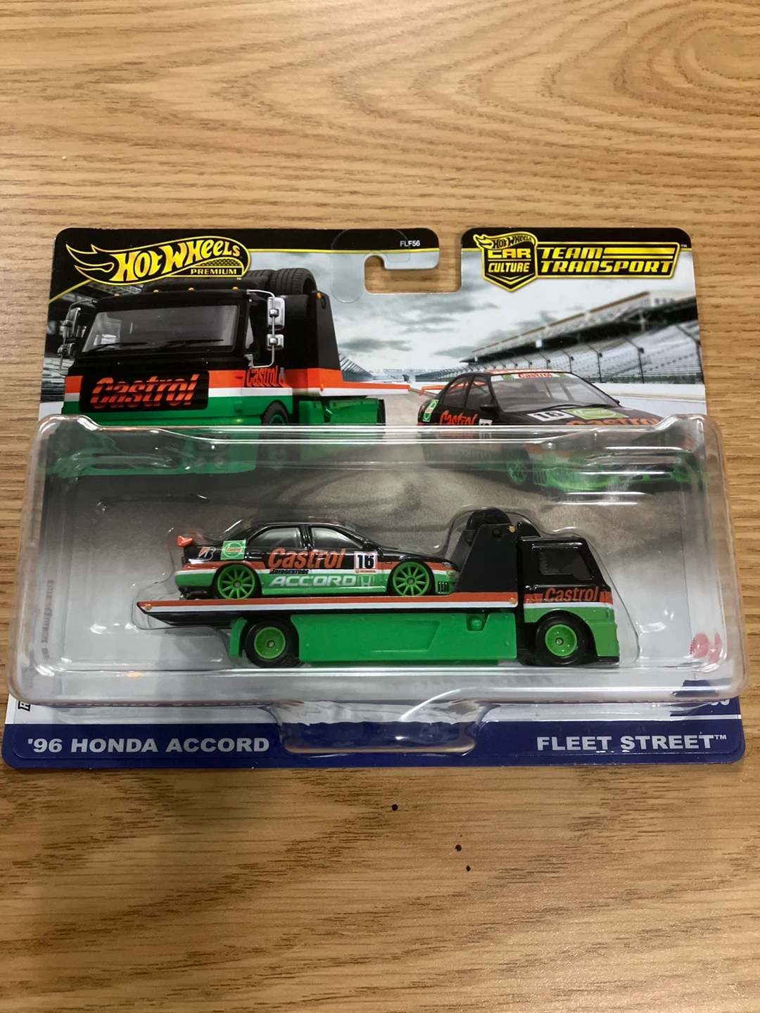 Hot Wheels Premium Team Transport featuring the '96 Honda Accord and Fleet Street transporter. It's brand new in the original packaging!