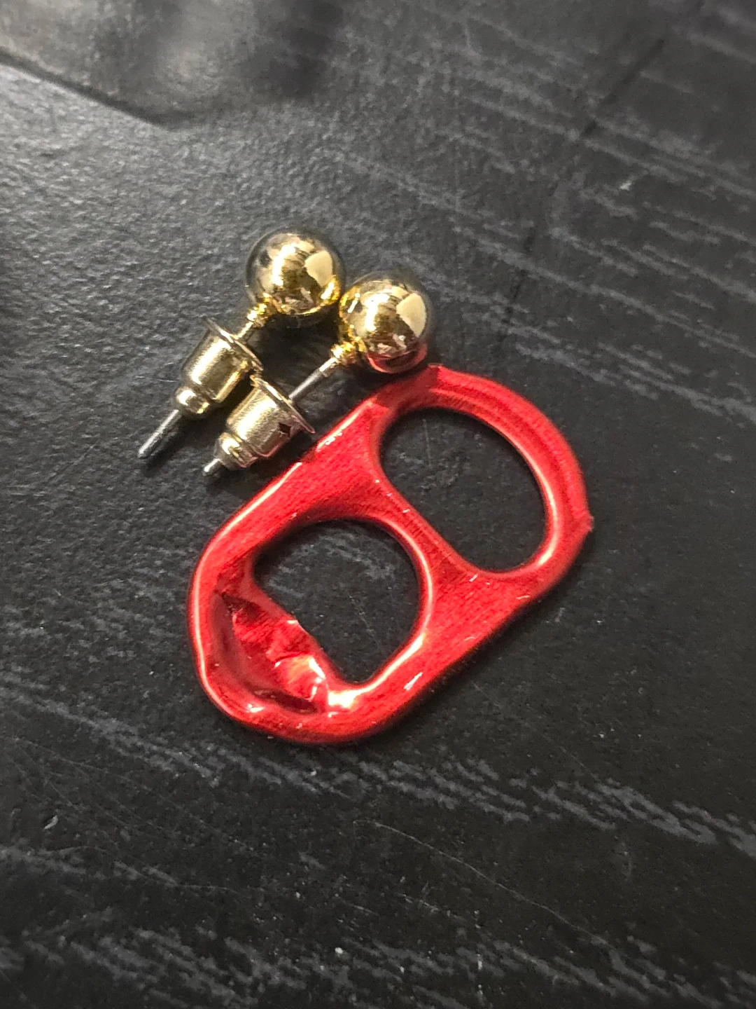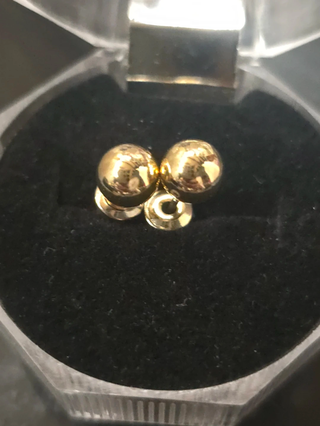 Here are some cute gold ball stud earrings. Gold plated hypoallergenic stainless steel, never used, tab for scale.