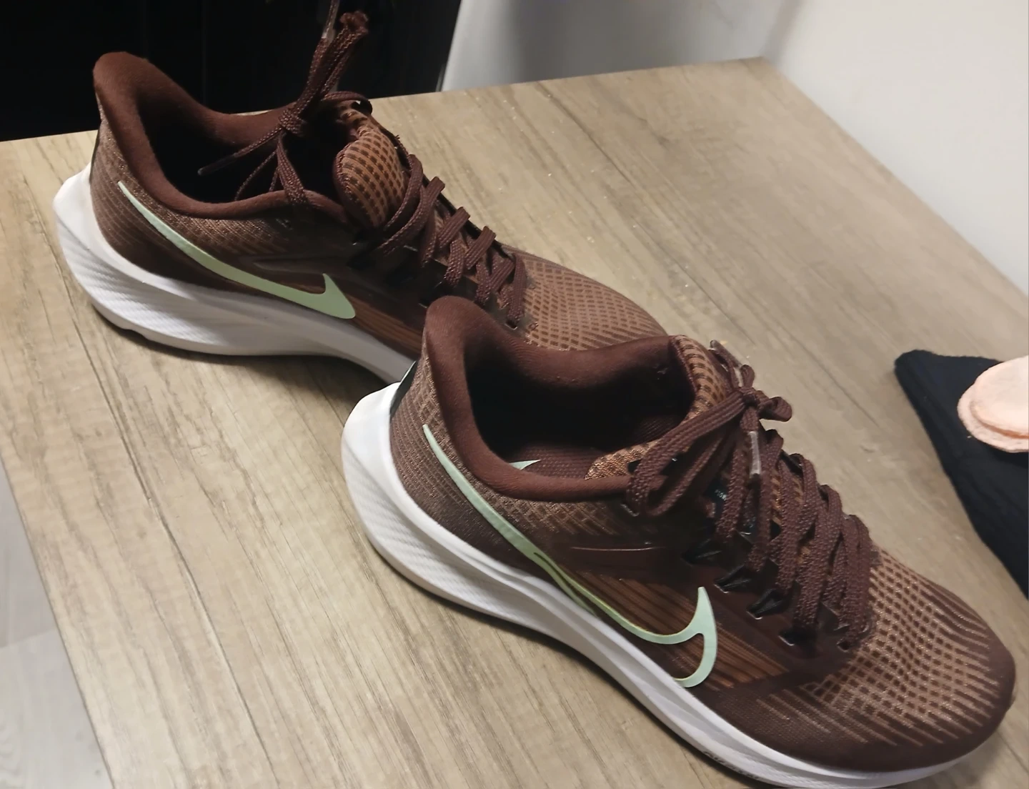 Selling a pair of Nike Air Zoom Pegasus 39 running shoes in a nice brown colour! They are in great condition and ready for someone who wants a comfortable and stylish running shoe