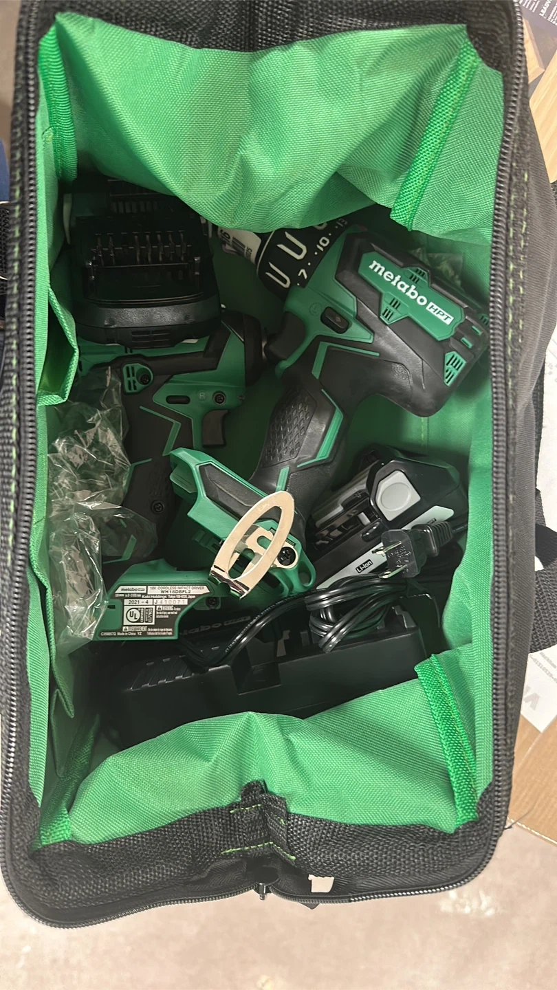Selling a Metabo HPT tool bag that comes with a 2 drill ,2 batteries , 1 charger . Band new and ready for your next project! Includes the bag itself, to get the job done