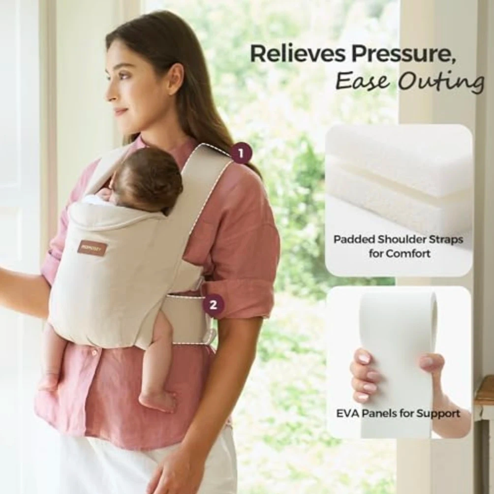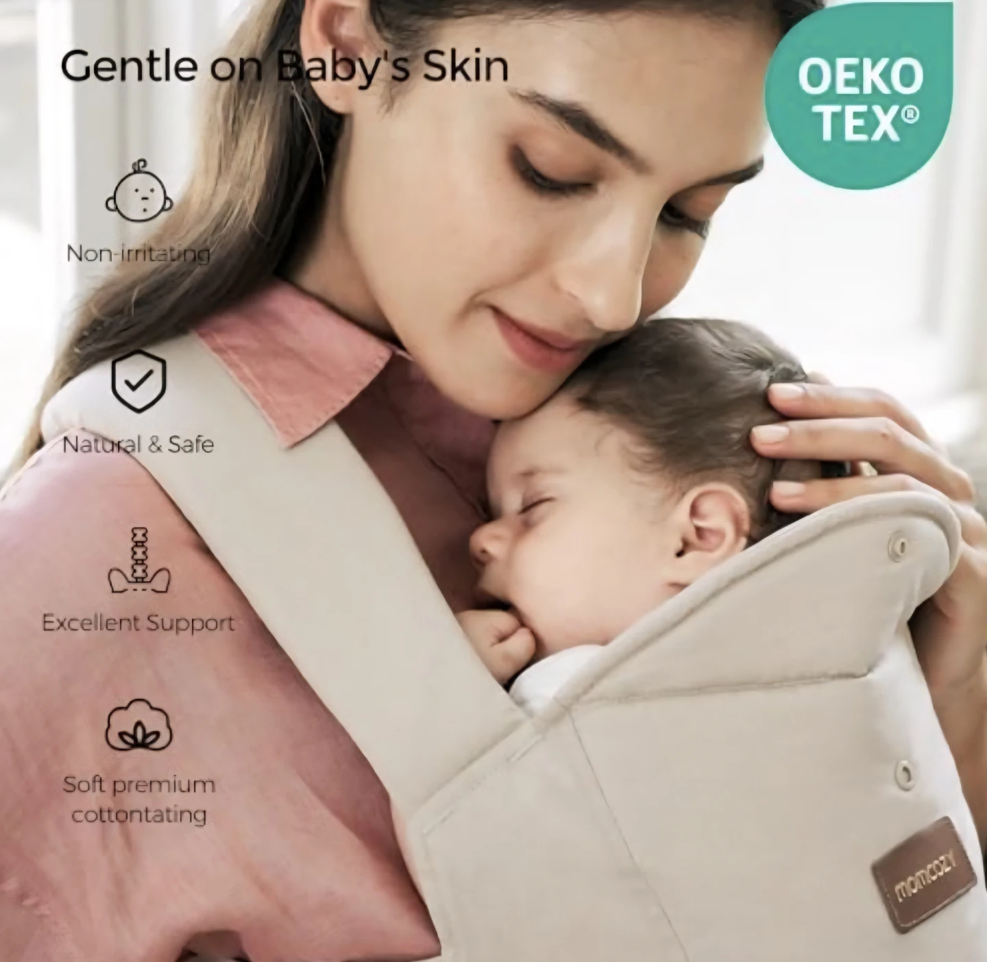 the carrier ensures your baby feels snug and secure, resting peacefully against your heartbeat.