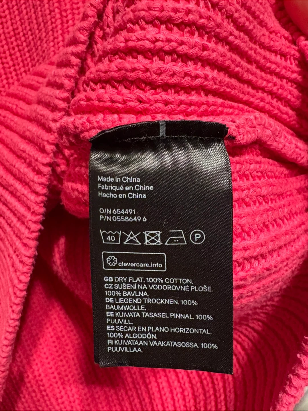 Here's a bright pink sweater from H&M, retail was $49.99. It's made of 100% cotton and is perfect for adding a pop of colour to your wardrobe. No size tag, fits like a small. Excellent condition. Pick up only.
