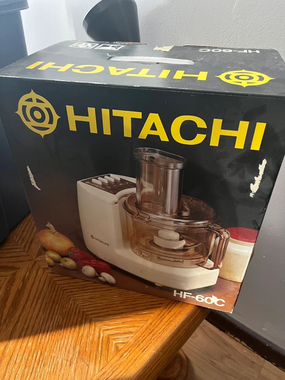 Selling a Hitachi HF-60C food processor. It comes with the original box. This is a great food processor for all your cooking needs! Never used.
