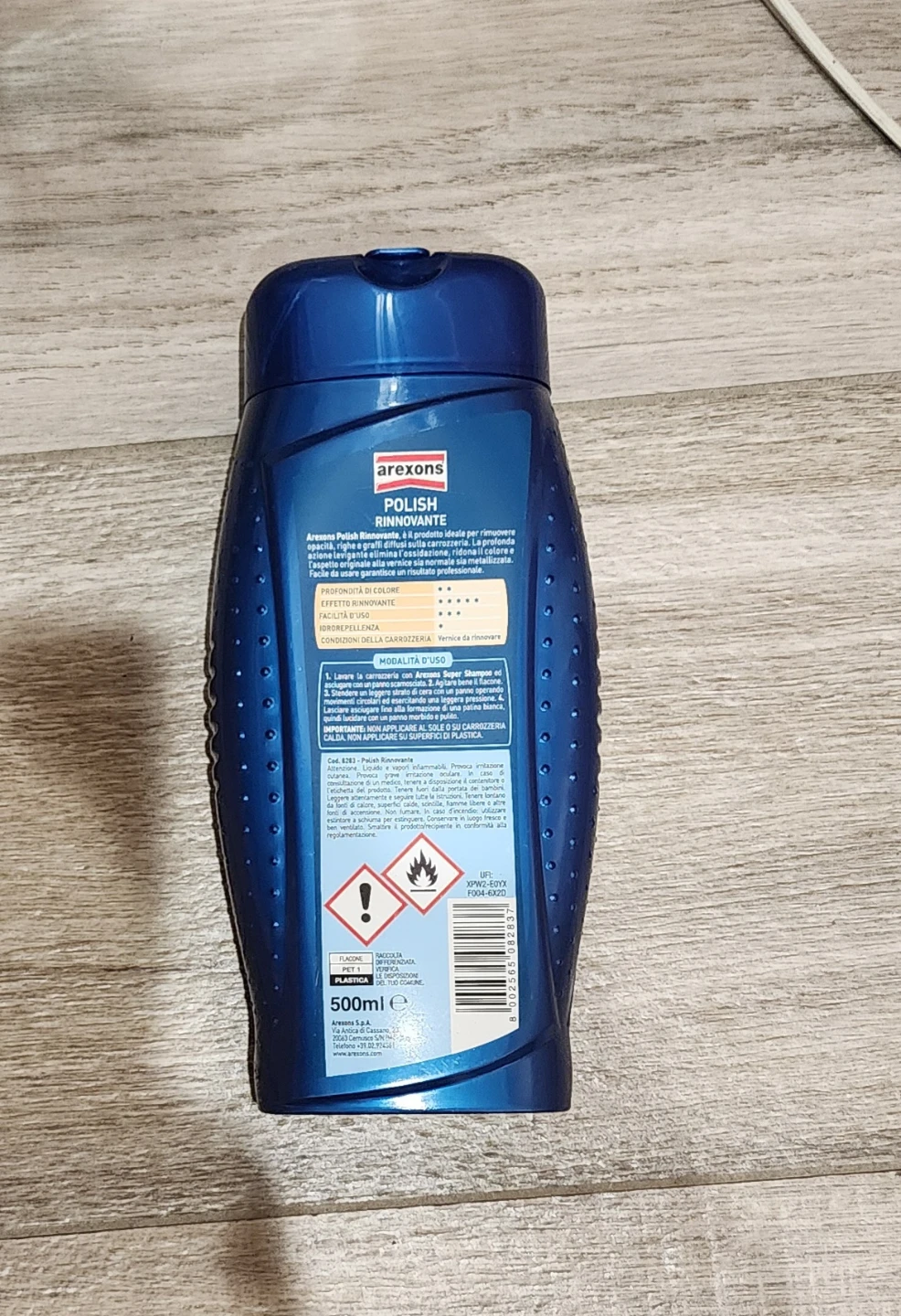 Selling a bottle of Arexons Polish Rinnovante! The bottle contains 500ml of polish. It's designed to eliminate opacity and difficult scratches on car bodies. Get your car looking shiny and new!