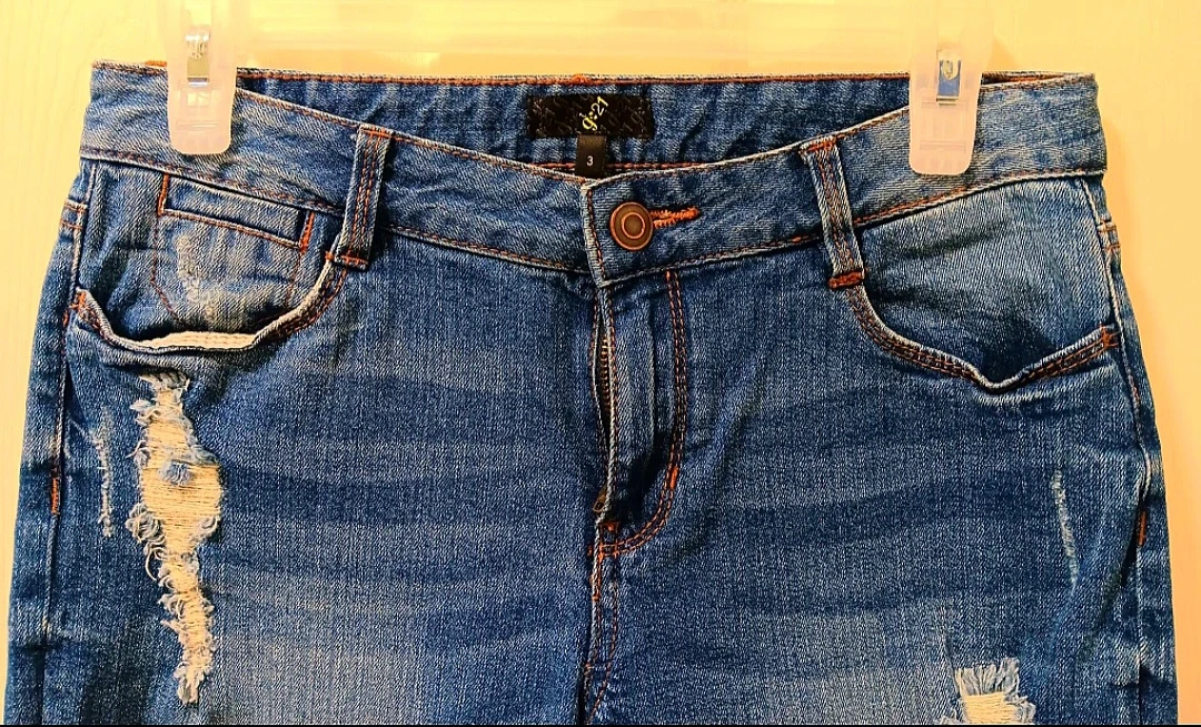 I am selling these stylish, pre-owned G21 brand women's jeans, perfect for adding a trendy touch to your wardrobe with their modern, ripped design. These jeans feature a comfortable fit and a classic denim look, making them versatile for various outfits.