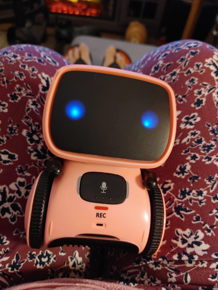 I'm selling a cute pink AT robot! It's in great condition and ready for a new friend. It has a little microphone and a screen, perfect for interactive learning and play