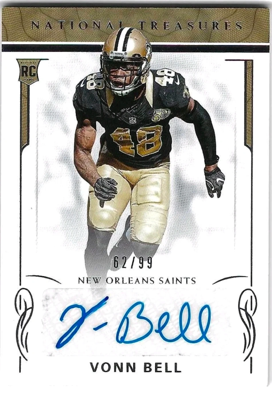 Selling a Vonn Bell National Treasures rookie card. It's numbered 62/99 and features his autograph!