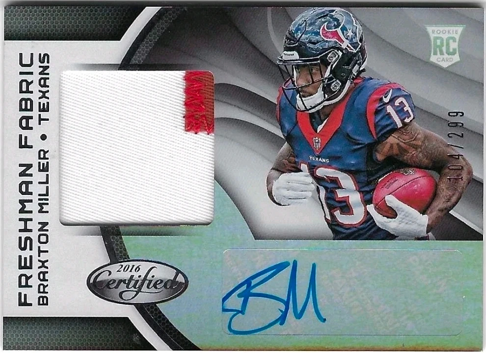 Selling a 2016 Certified Braxton Miller Freshman Fabric rookie card for the Houston Texans! It's in great condition and numbered /299.