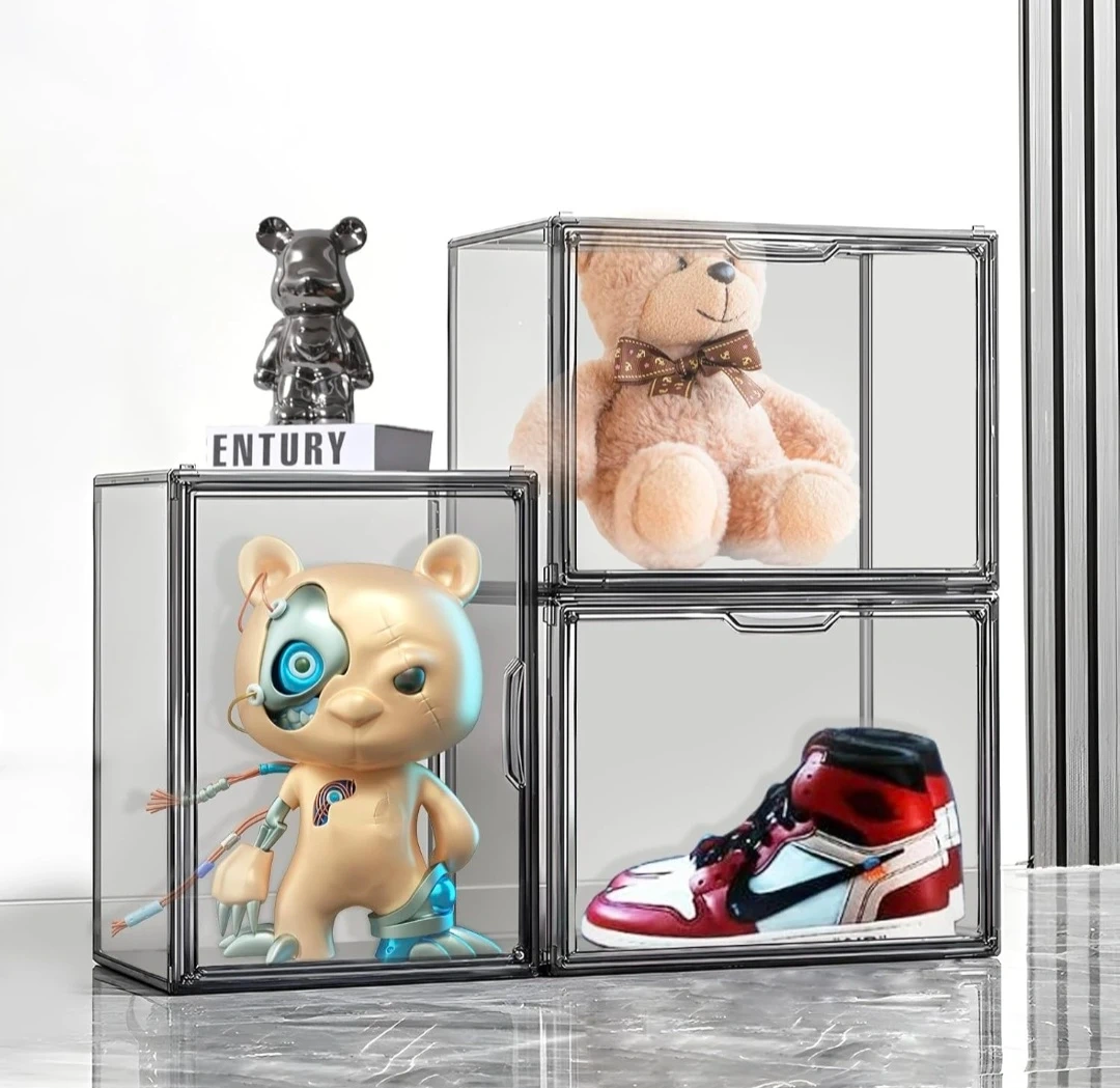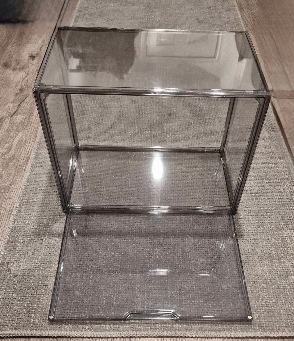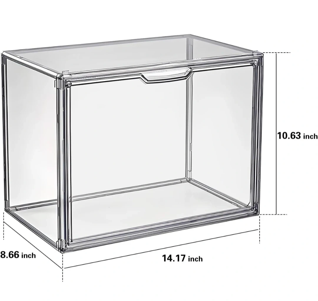 Clear display case box perfect for displaying your favorite items, whether it's collectibles, shoes, or figurines. Stackable. 14.17" x 8.66" x 10.63"