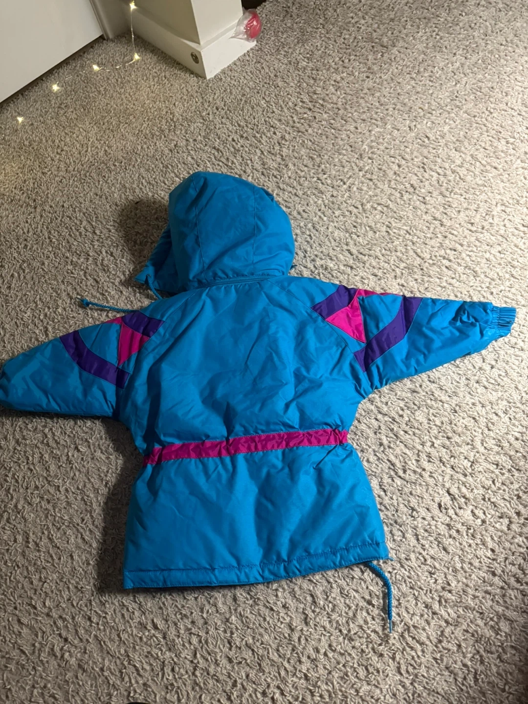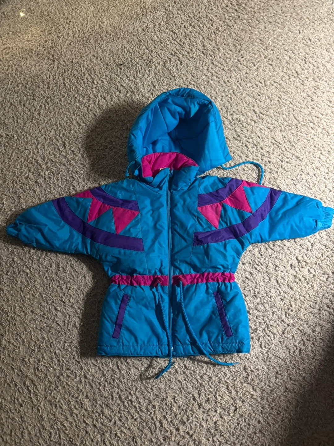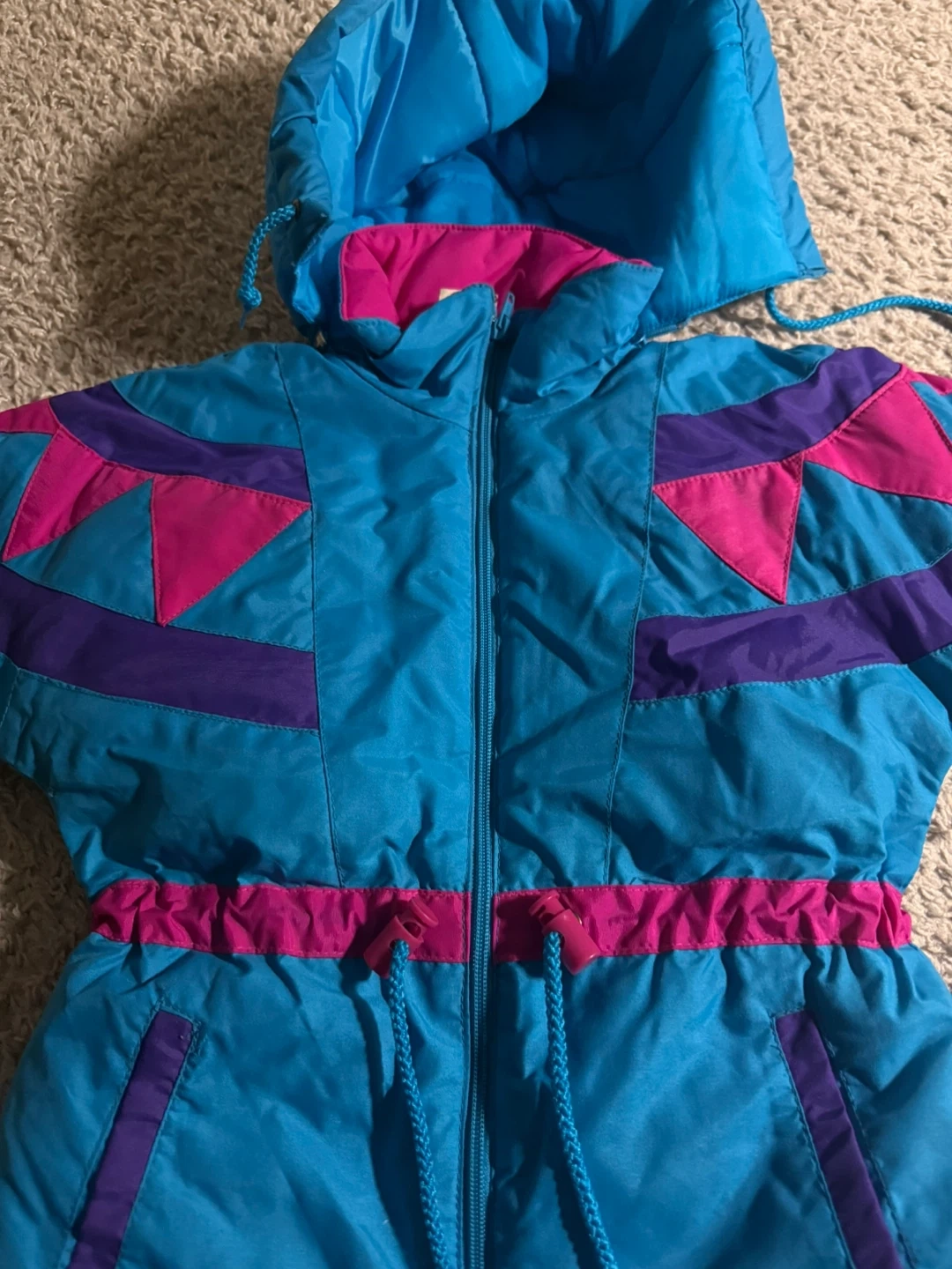 Selling a super cute kid’s vintage winter jacket! It's a vibrant blue with eye-catching pink and purple accents of the 80s-90s. Perfect for staying warm and stylish during the colder months!