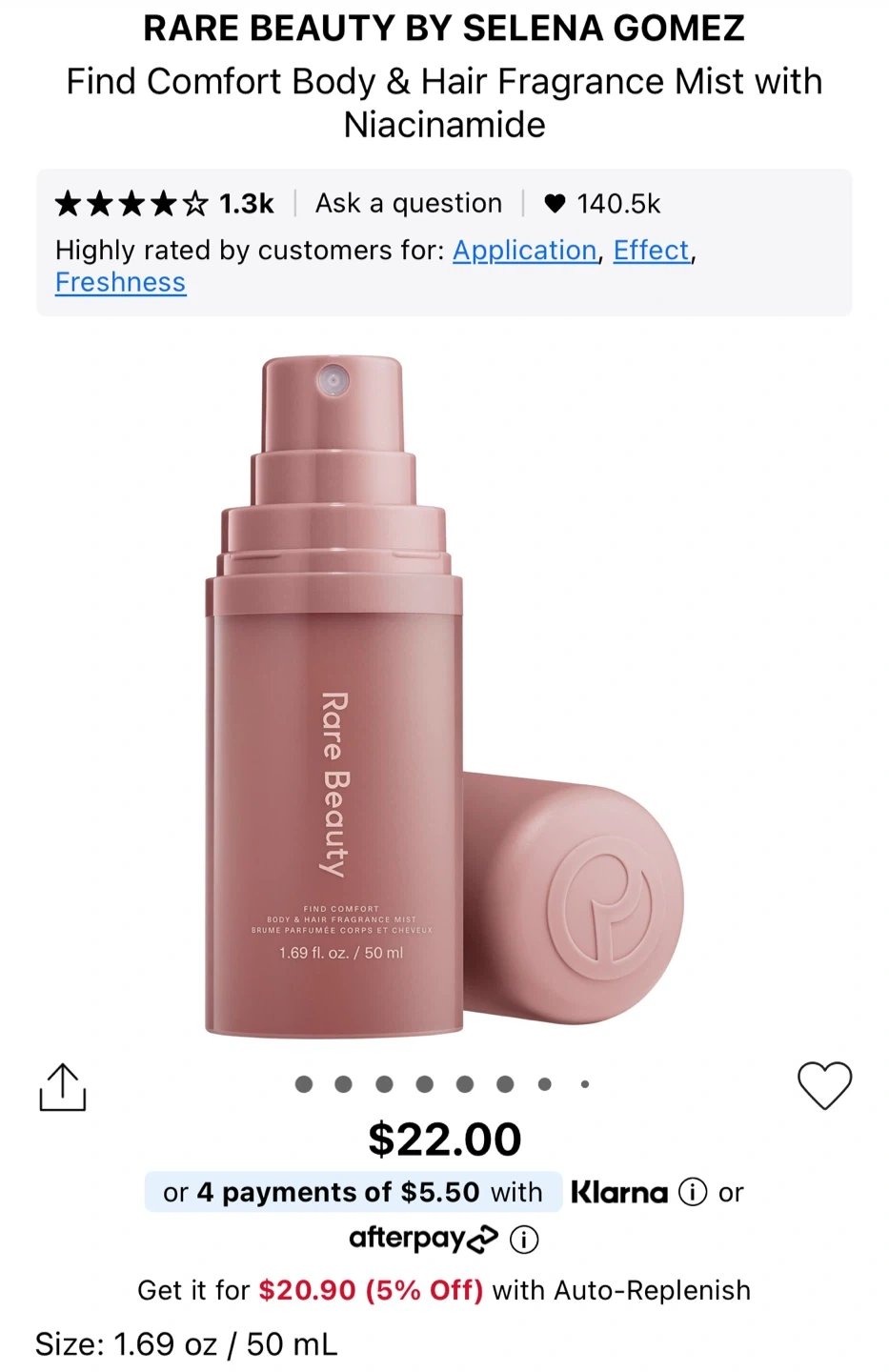 Selling a Rare Beauty Find Comfort Body & Hair Fragrance Mist! It's a body and hair fragrance that comes in a 1.69 fl oz / 50 ml bottle. Perfect for a refreshing scent on the go. The product is brand new and sealed, selling on Sephora for $22+ tax, now selling for $20.