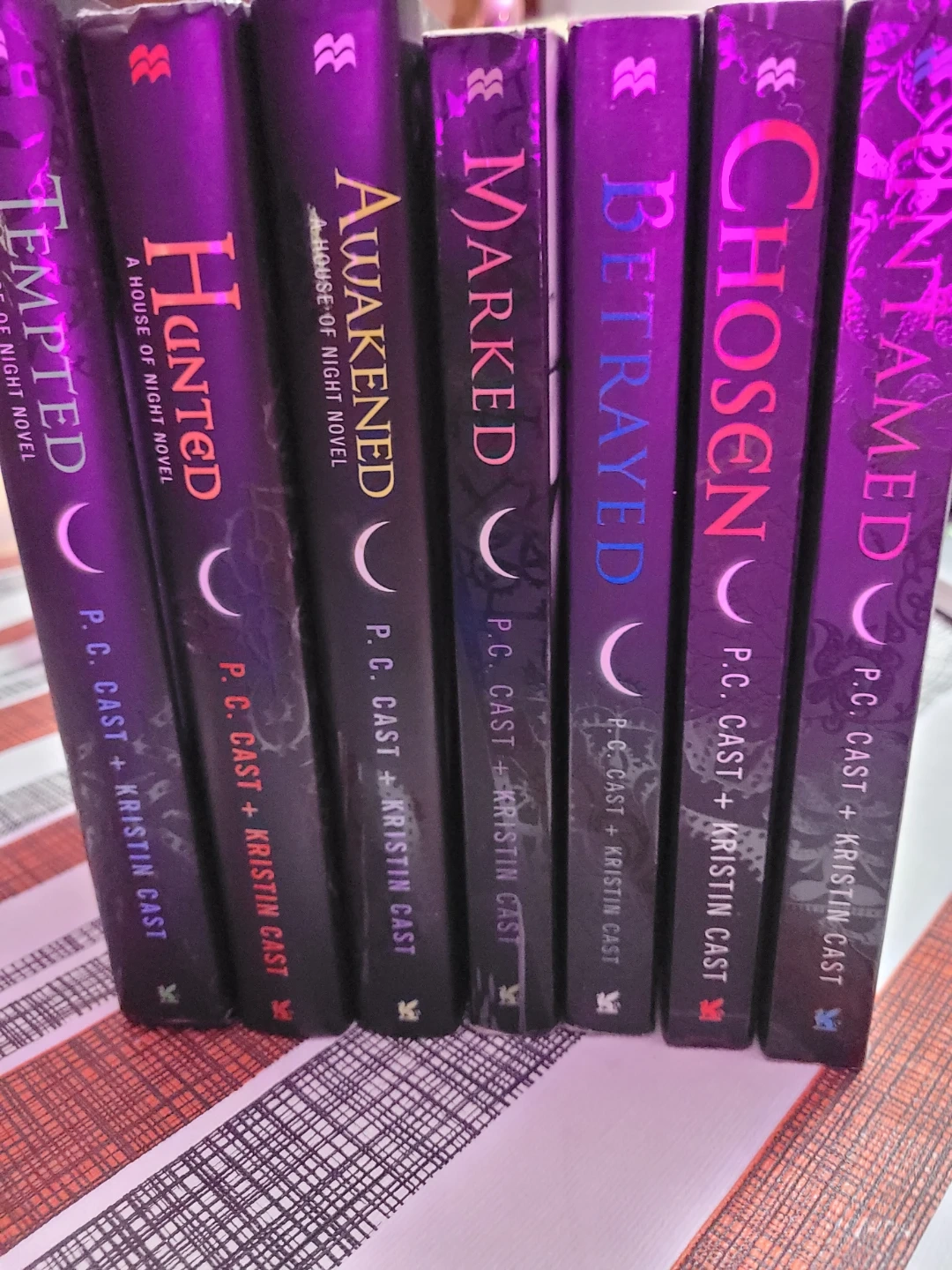 Selling a collection of books from the House of Night series by P.C. Cast and Kristin Cast. Titles include Marked, Chosen, Untamed, Betrayed, Awakened, Haunted and Tempted.