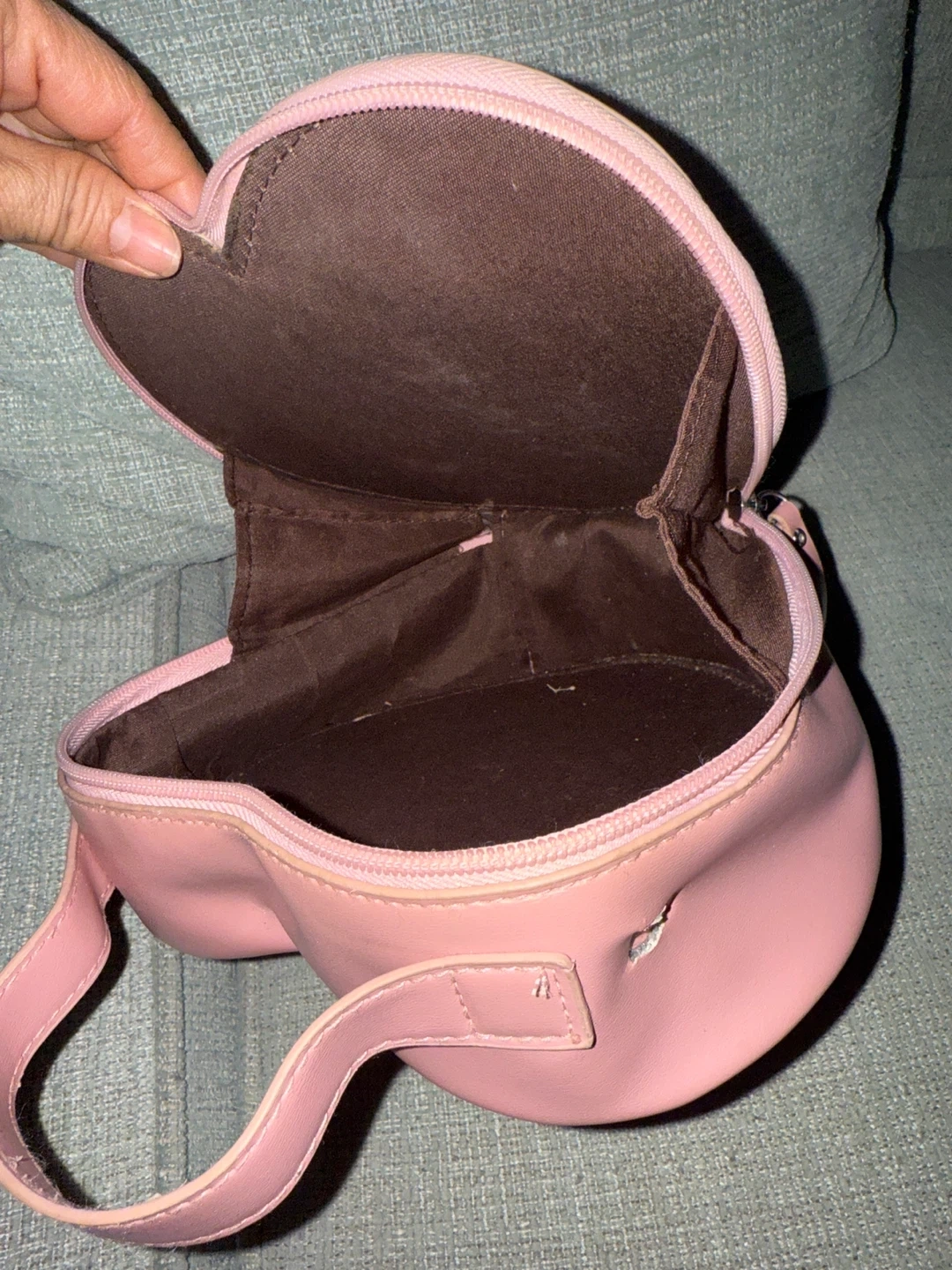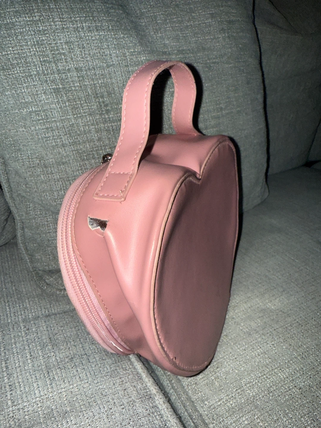Giving away a cute pink heart-shaped handbag! It's “okay” condition and perfect for adding a sweet touch to any outfit. It has a zipper closure and a handle for easy carrying.
