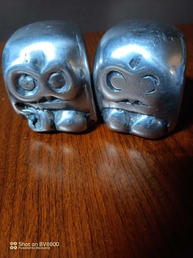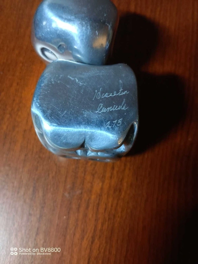 These handcrafted metal owl figurines are a unique addition to any collection. Each piece is signed by the artist, 'Hoselton Canada, 273', adding to their distinctiveness. As they are used, they possess a vintage charm with slight wear that speaks to their history. Specifications: