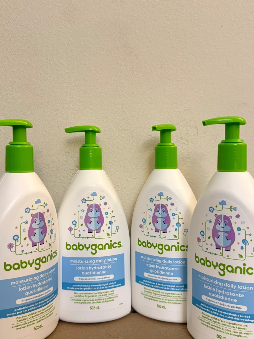 Brand new Babyganics moisturizing daily lotion - gentle, plant-derived, pediatrician & dermatologist tested. Great for babies, kids & anyone with sensitive skin. Fragrance-free / Chamomile-verbena options.