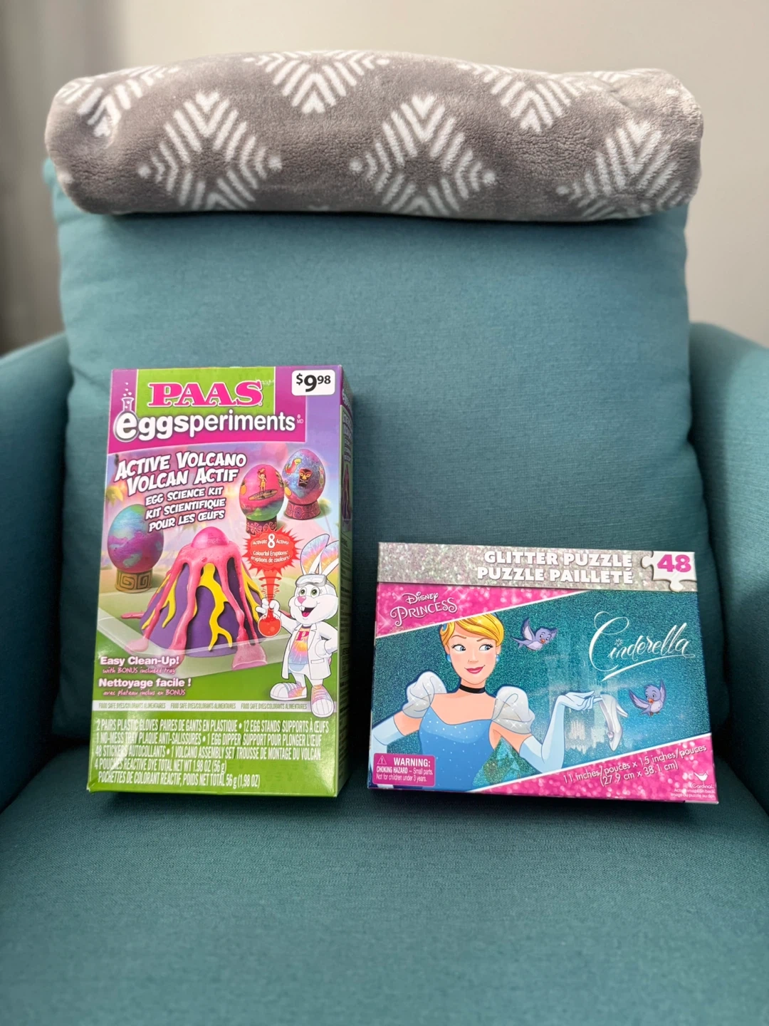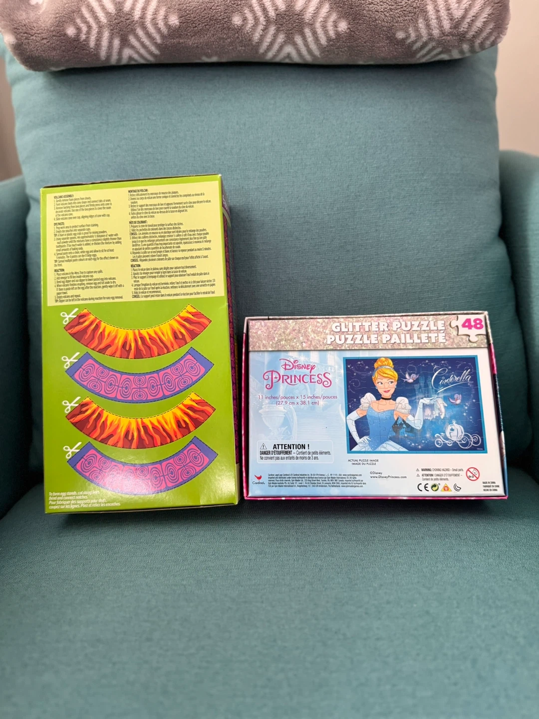 Selling a Disney Princess Cinderella glitter puzzle (48 pieces) and an Egg Science Kit. Great for kids who love puzzles and science!