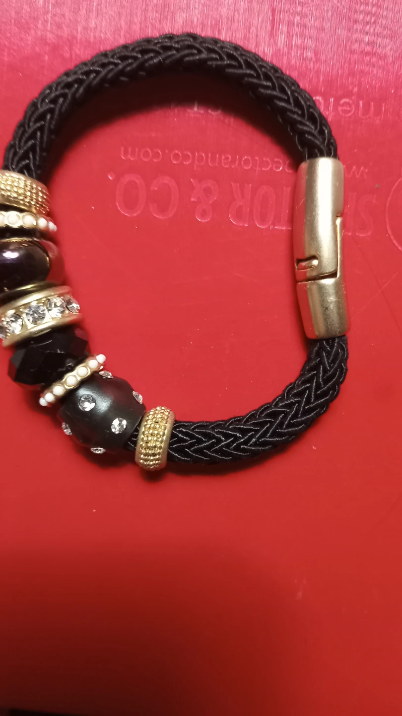 Selling a black beaded bracelet. It's in great condition and has a unique design with gold-tone accents. Perfect for adding a touch of elegance to any outfit