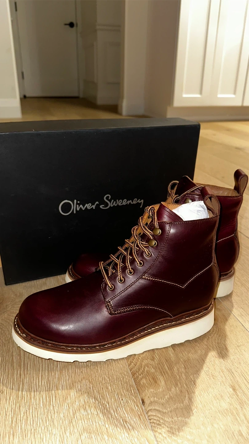 Oliver Sweeney boots in a beautiful burgundy leather. They come with the original box. Great for fall and winter!