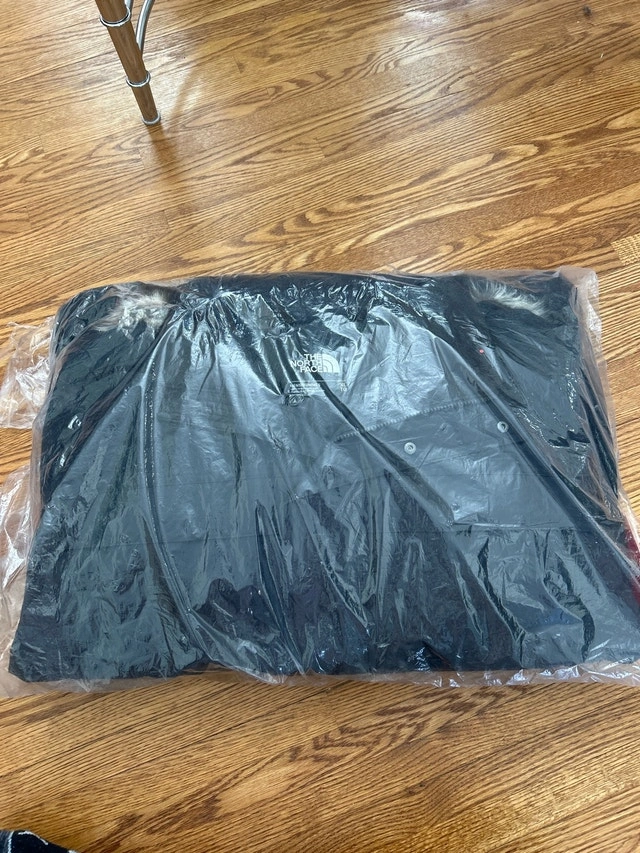 This is a brand new North Face parka, perfect for braving the Canadian winter. The jacket is in good condition and has a stylish look. * Full zip with button-closure storm flap * Removable hood with faux fur trim * size - XL