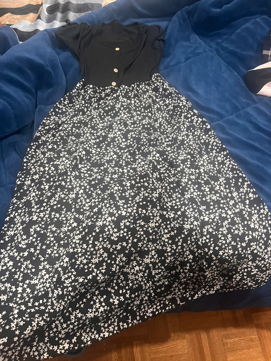 Cute dress with a black top and a black and white floral print skirt! It's in great condition and ready for a new home