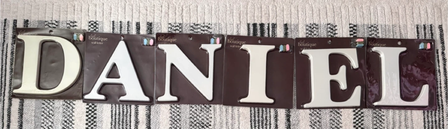 I have a set of Little Boutique wall letters that spell out "DANIEL"! They are still in their original packaging and ready to be used to decorate a room.