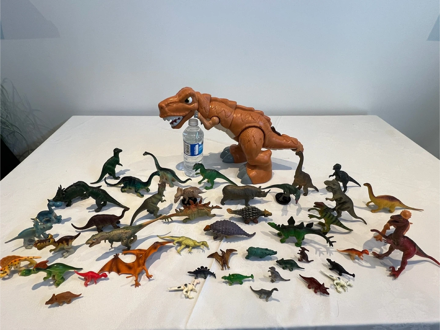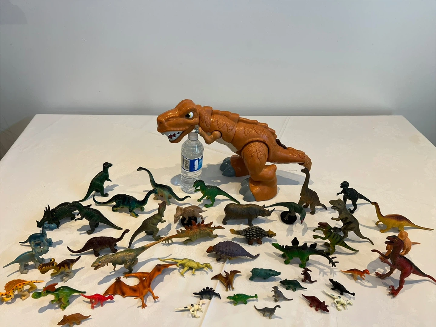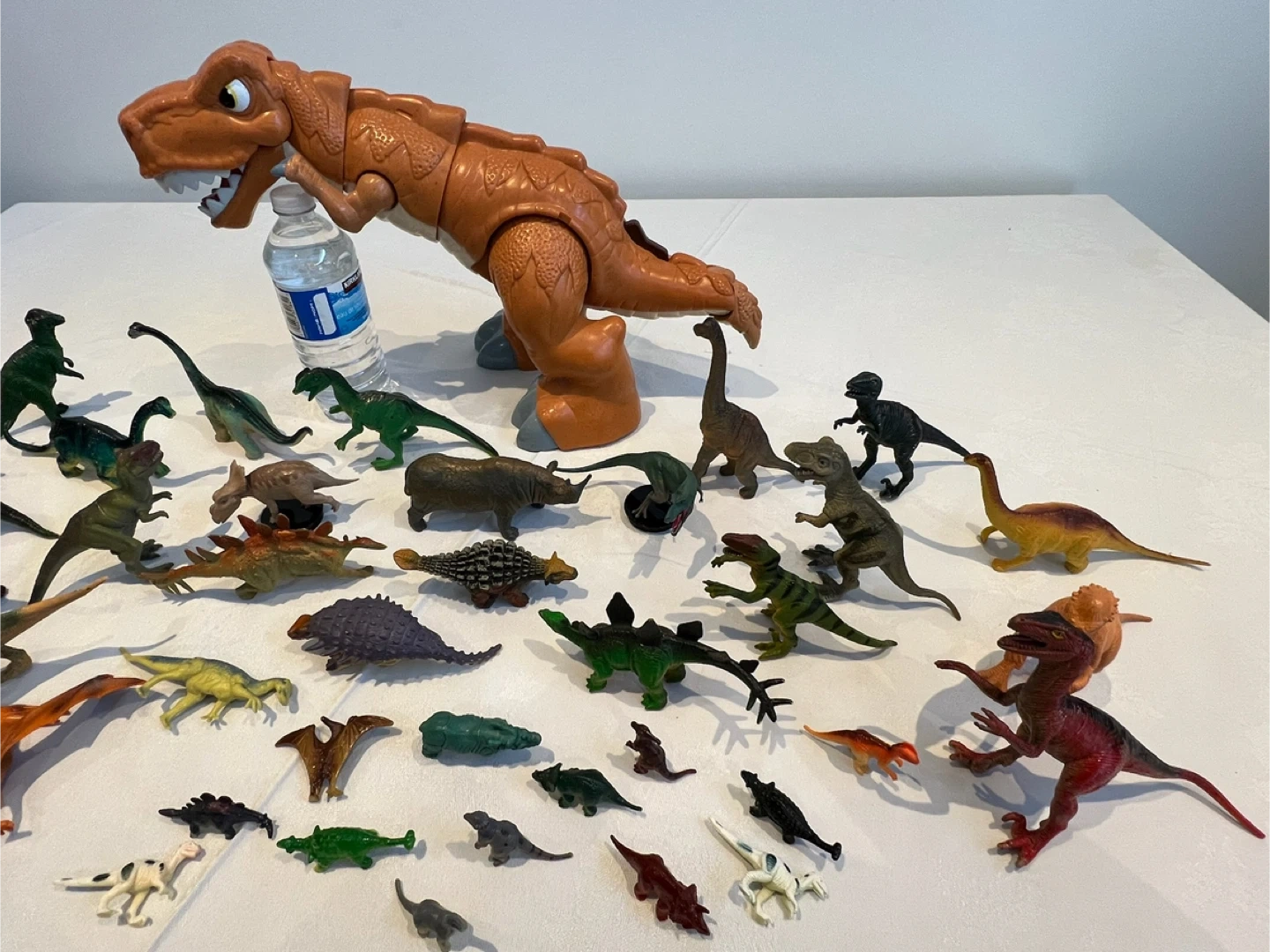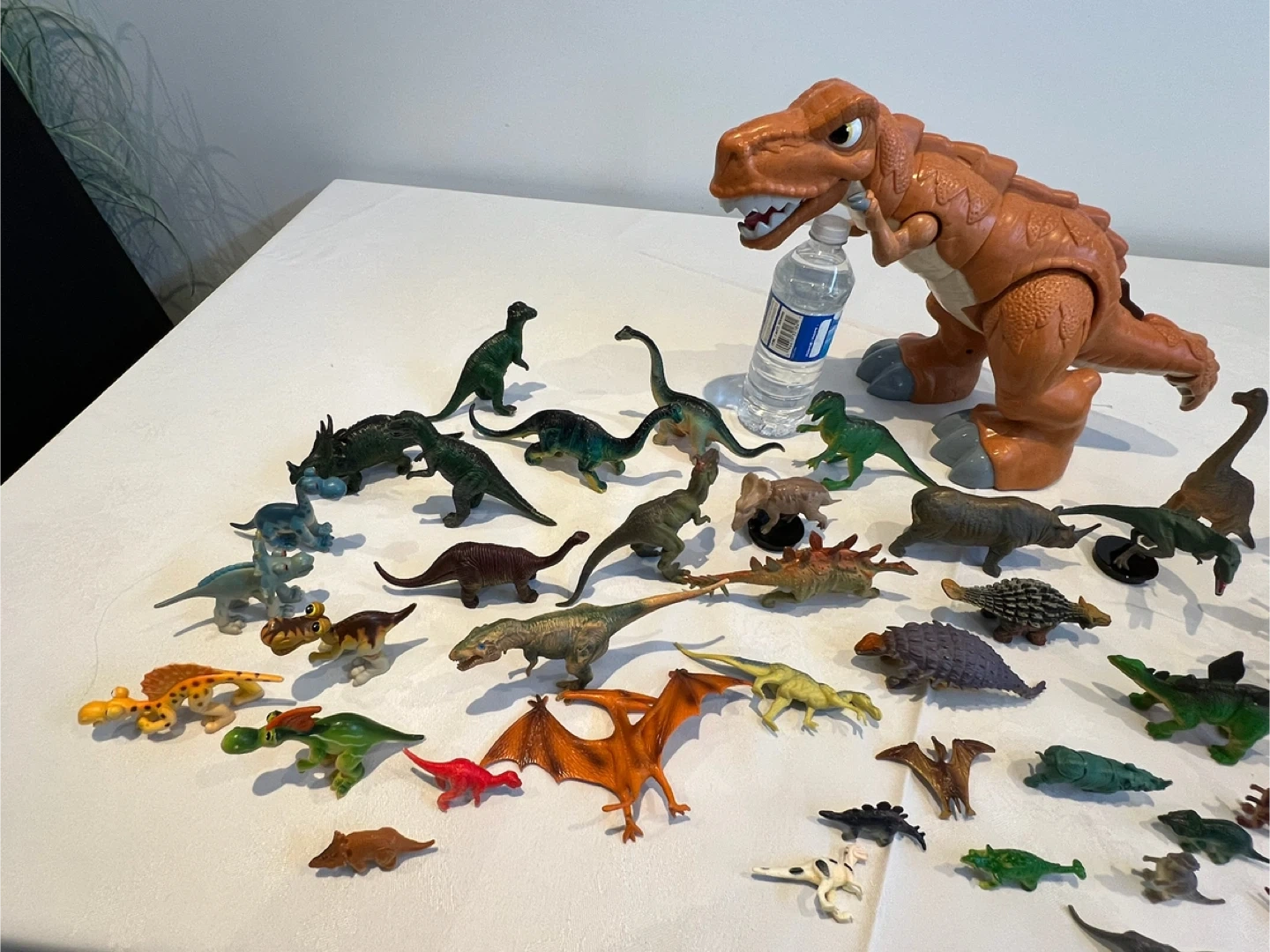 Selling a collection of dinosaur toys! There's a larger brown T-Rex figure and a variety of smaller dinosaurs in different colours and styles. Great for any dinosaur enthusiast!