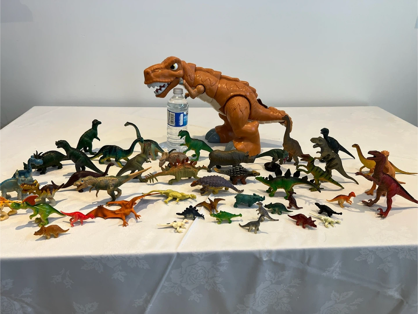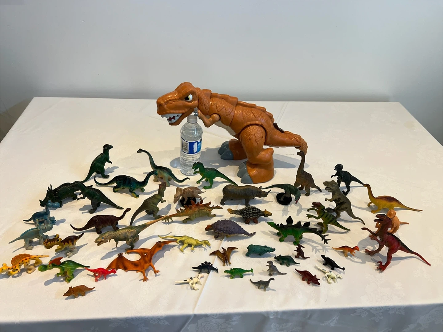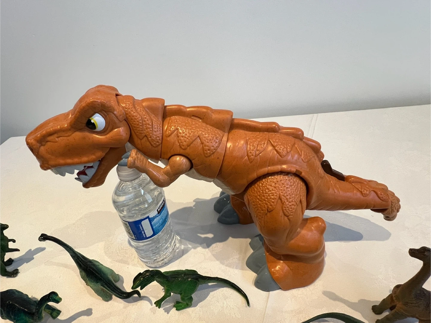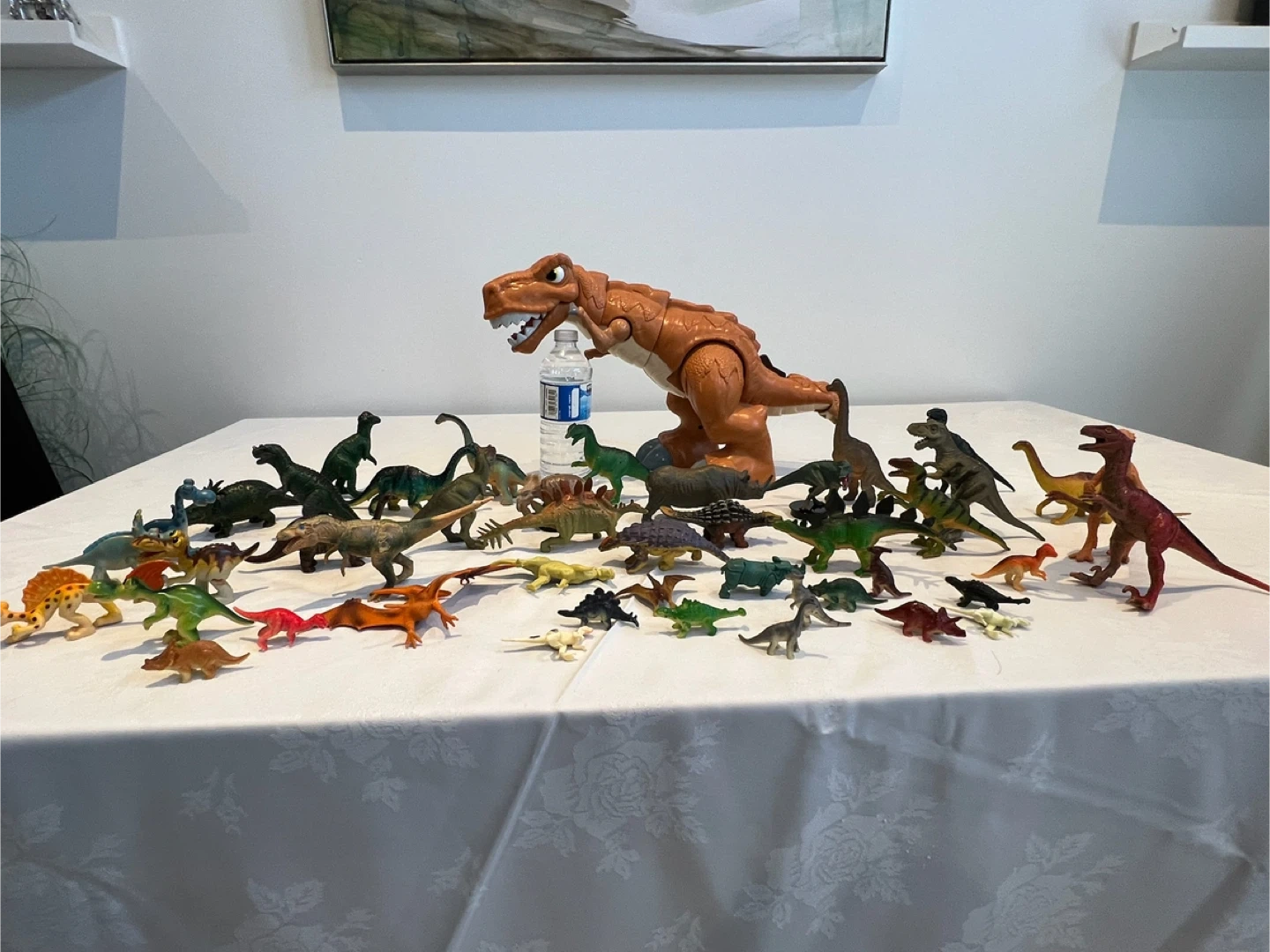 Selling a collection of dinosaur toys! There's a larger brown T-Rex figure and a variety of smaller dinosaurs in different colours and styles. Great for any dinosaur enthusiast!