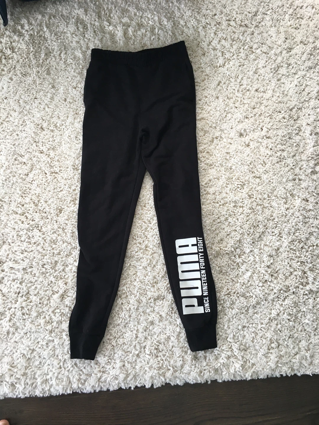 Selling a pair of Puma joggers in Youth size XL (16-20). They're black and feature the Puma logo on the leg. Great for lounging or working out!