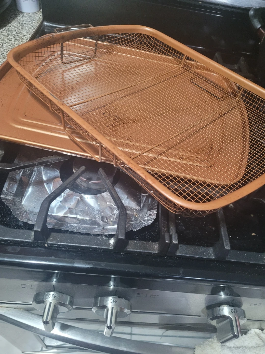 Selling a Copper Chef crisper set. It includes the crisper basket and the baking sheet. It is in good condition and ready for a new kitchen!