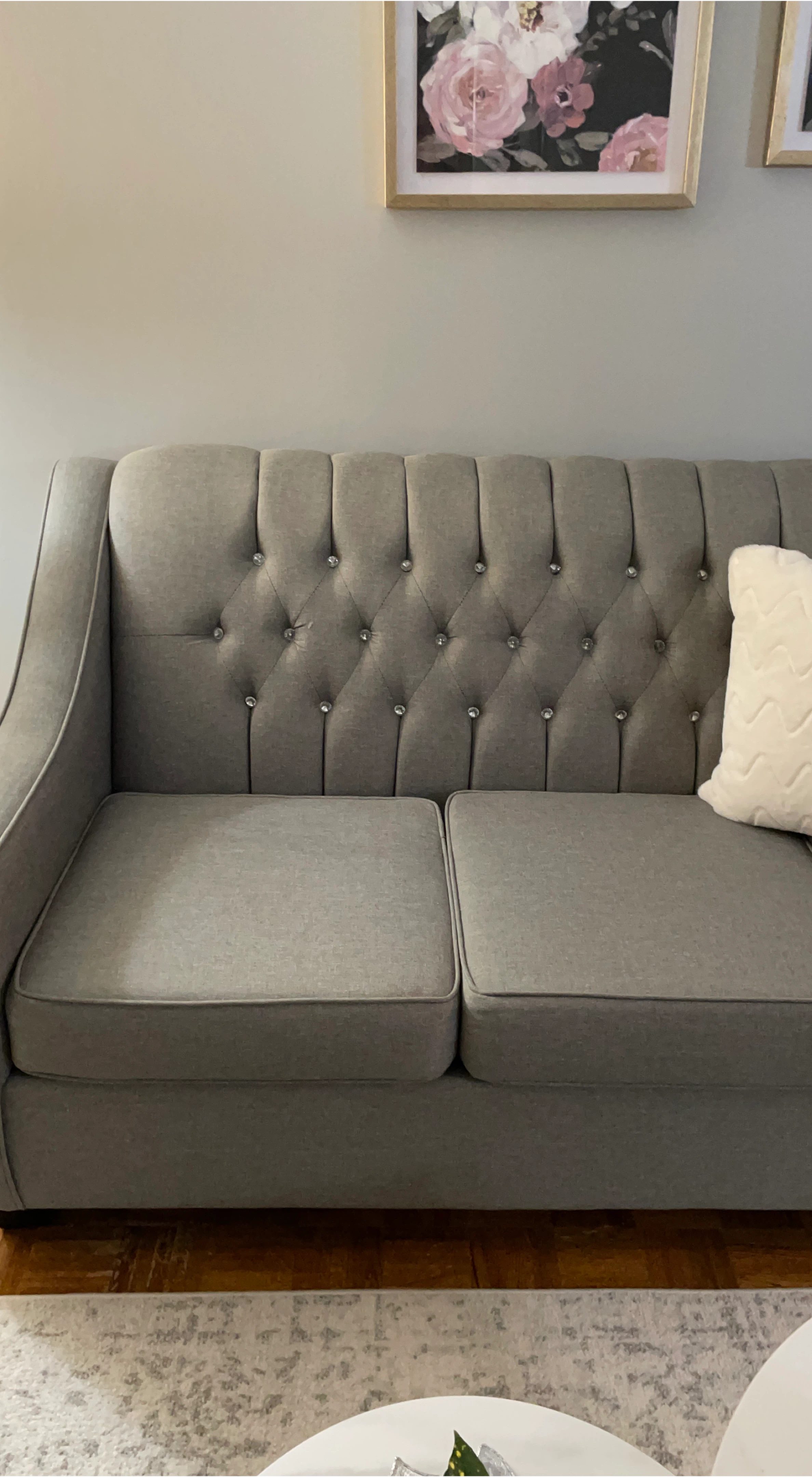 Grey Tufted Loveseat Sofa