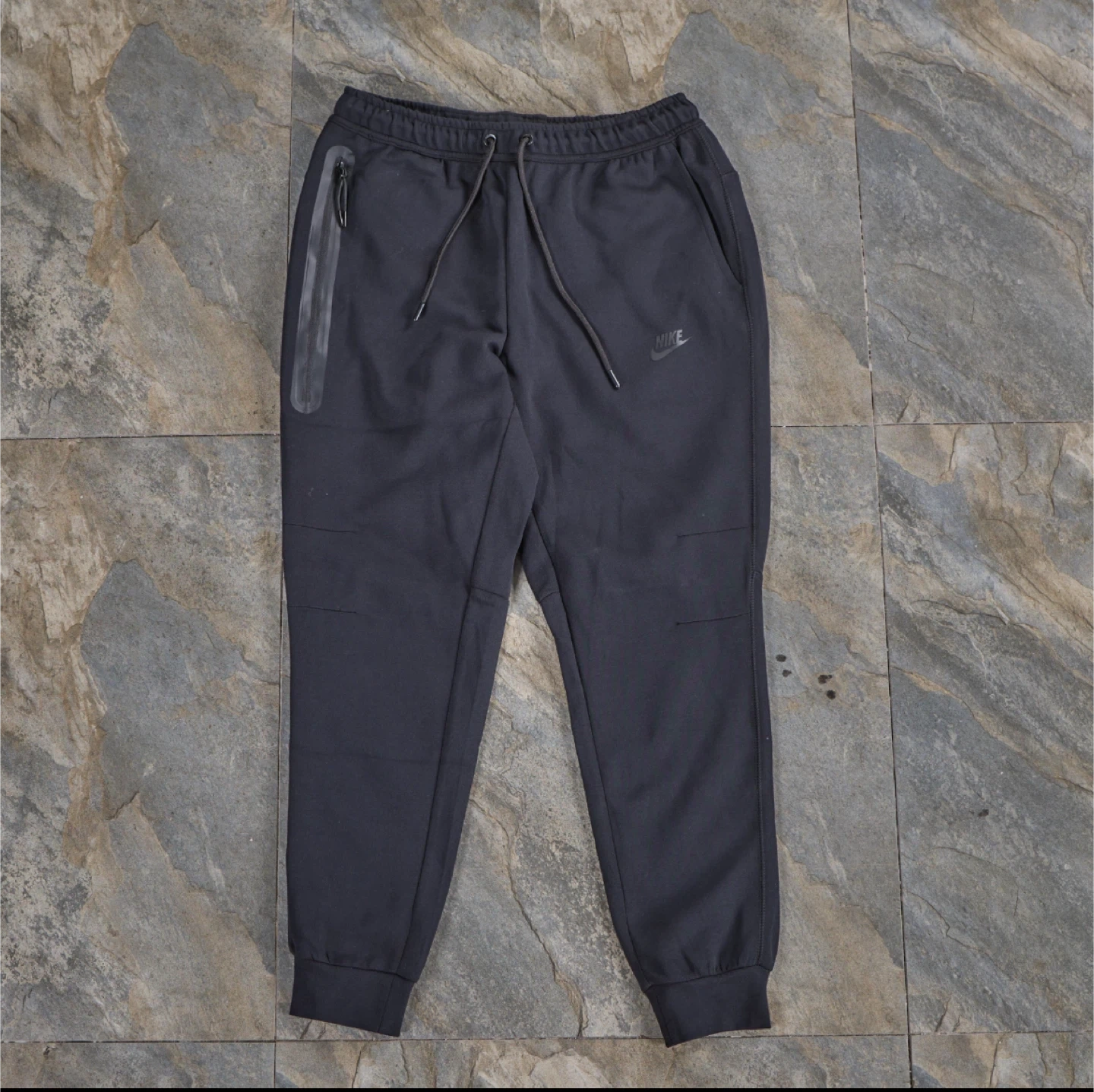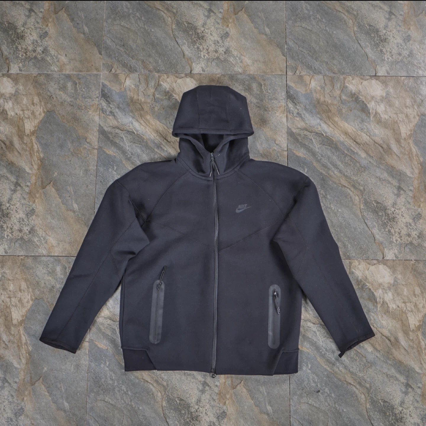 Selling a Nike Tech Fleece set, including both the hoodie and pants. The size is L. The material is a comfortable blend of 53% cotton and 47% polyester for the body, with pocket bags and hood lining also made from the same blend