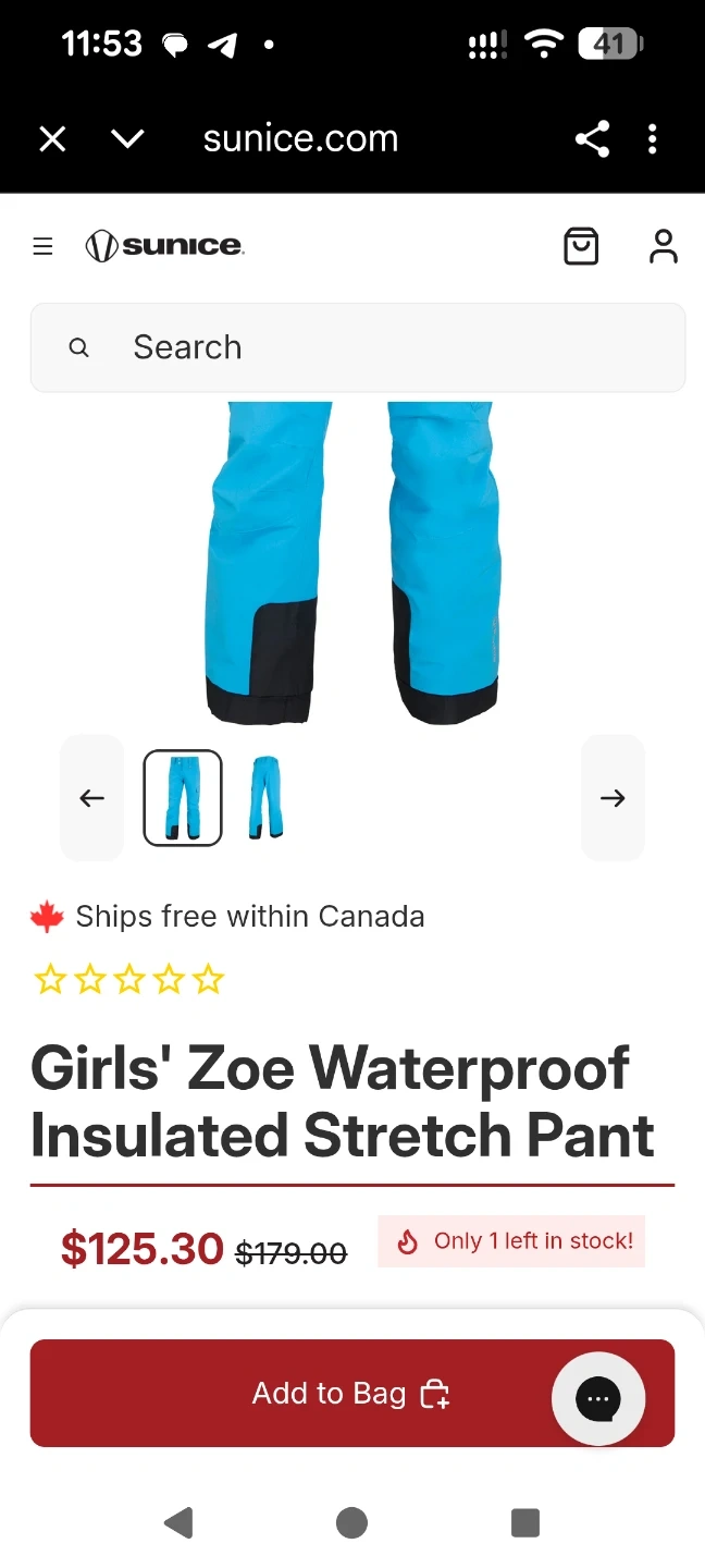 Selling a pair of Sunice Zoe girls ski pants! They are a vibrant blue with black accents. Originally bought for $178.99. Never used, coming with a tags on it.