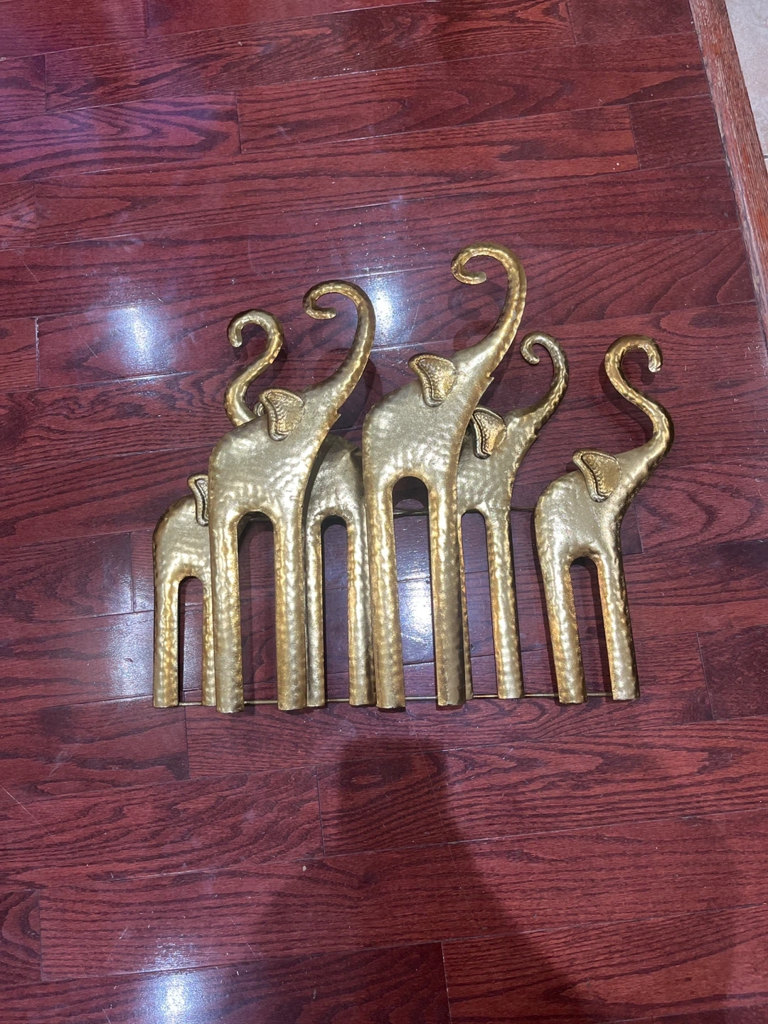 Unique and eye-catching gold elephant wall decor, perfect for adding a touch of elegance to any room! It features a row of five elephants in a stylish design. Great for living rooms, bedrooms, or even nurseries
