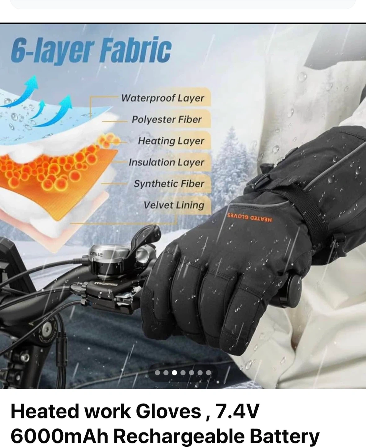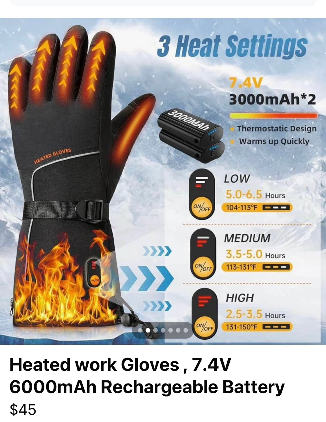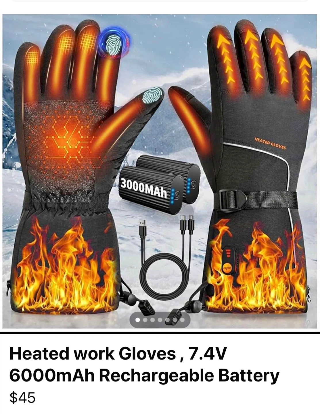 These heated work gloves are perfect for keeping your hands warm in cold conditions! They feature a 7.4V 6000mAh rechargeable battery. There are 3 heat settings, touch screen design, and are made with 6-layer fabric. They are waterproof and have a velvet lining