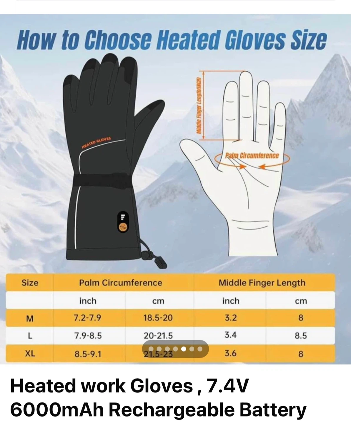 Heated Work Gloves - 7.4V Rechargeable Battery