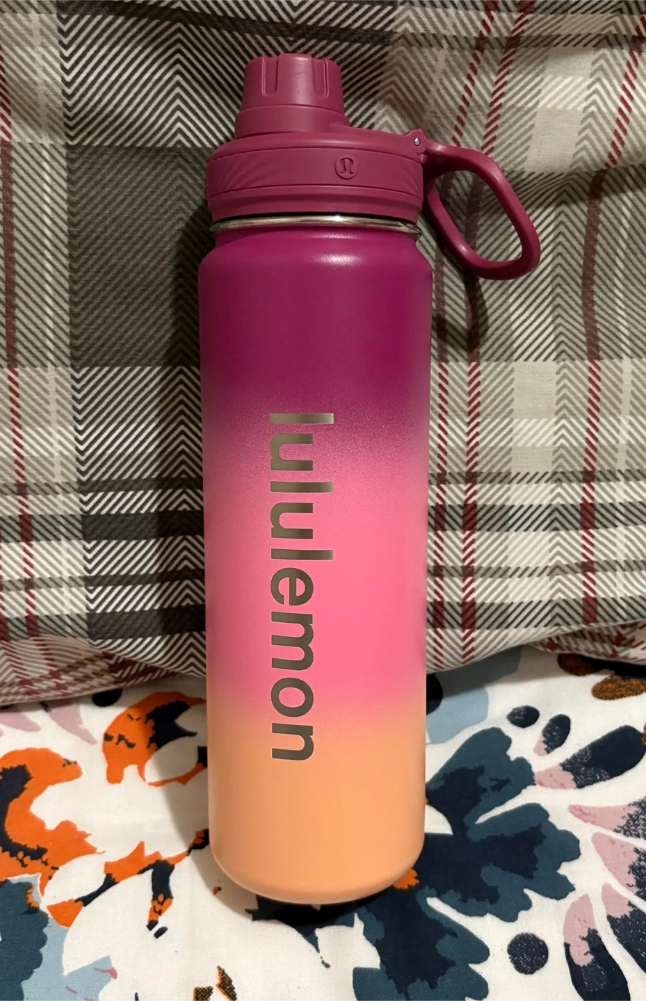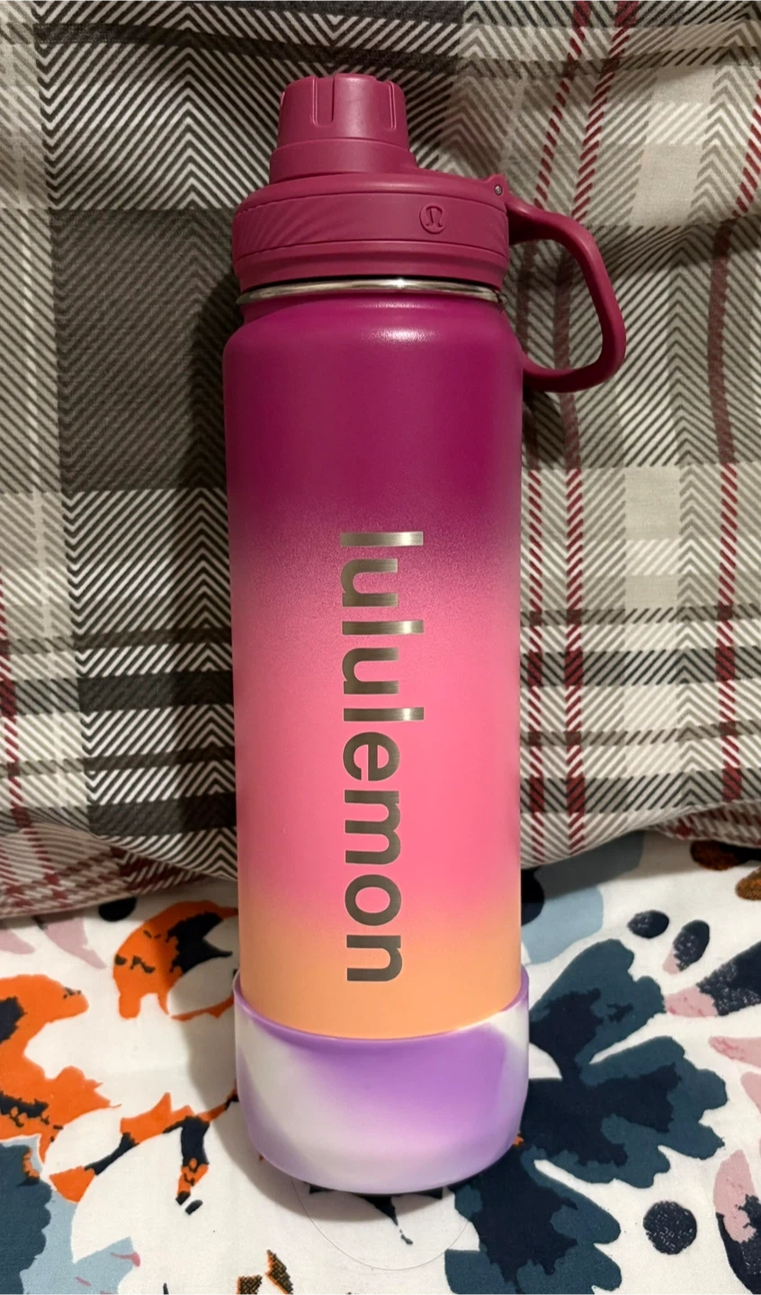 Selling a Lululemon Back to Life water bottle in a beautiful ombre colour! It holds 24oz and is in great condition. Includes a silicone sleeve and paracord handle for easy carrying.