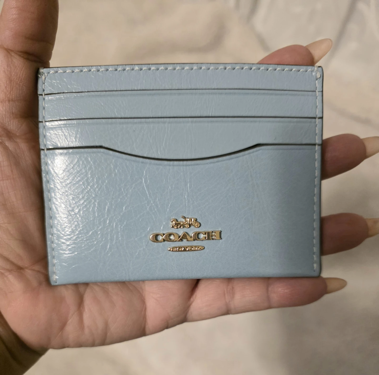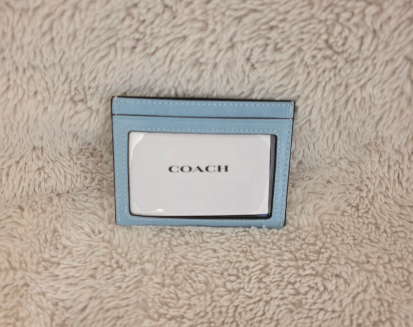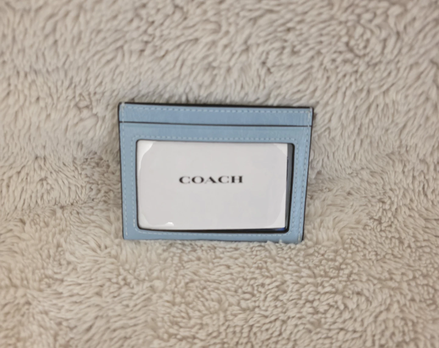 Coach Slim ID Card In Glazed Leather - Powder Blue