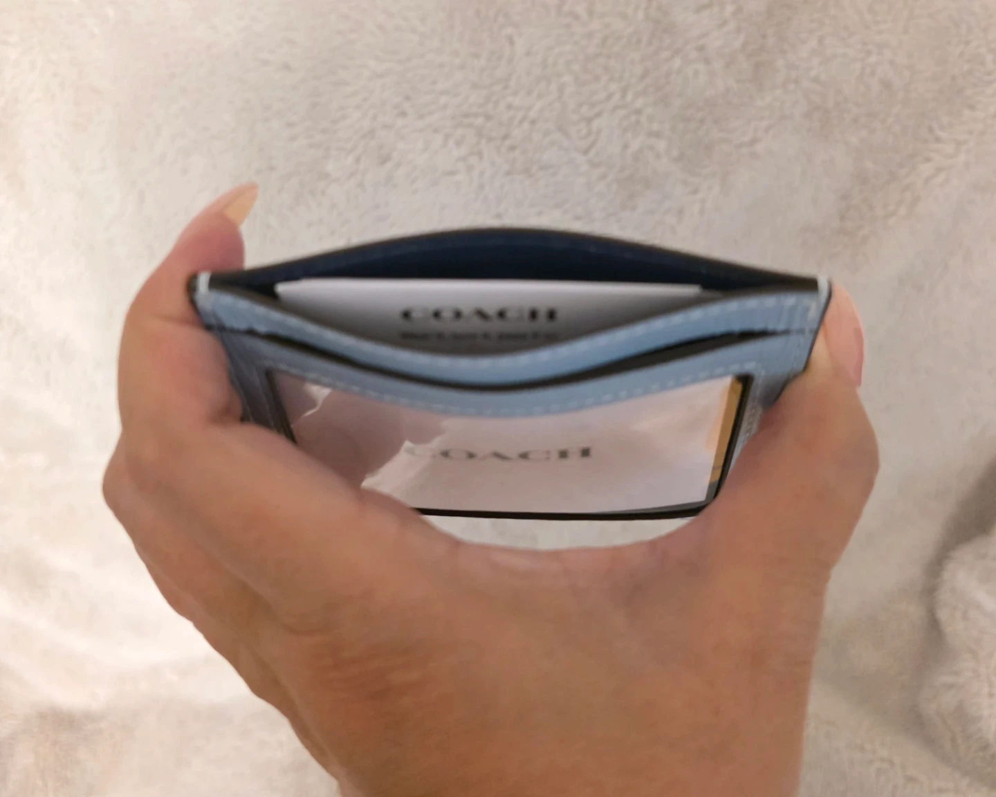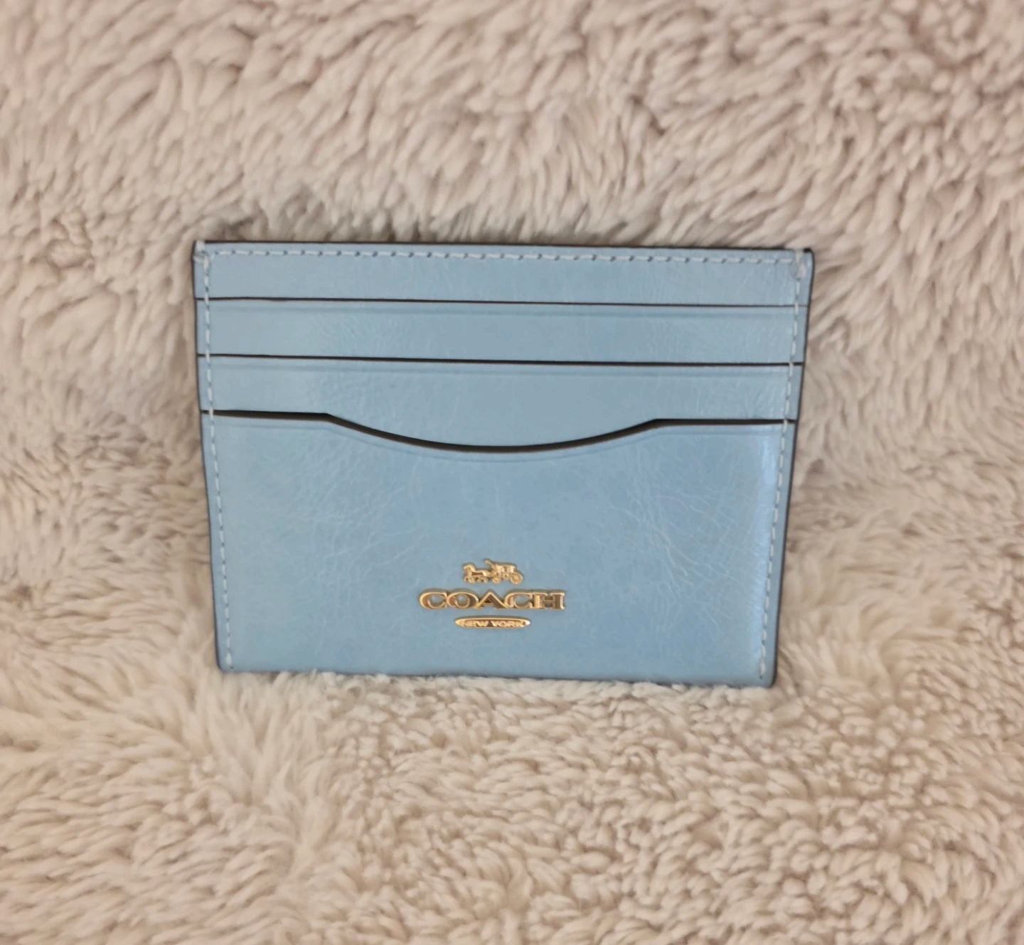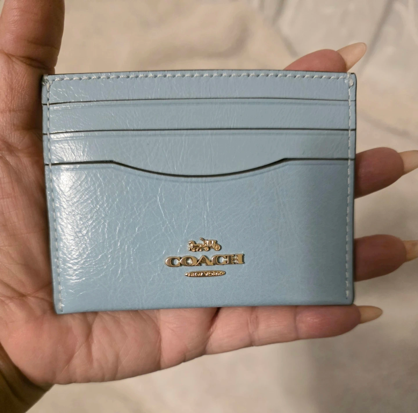 Coach Slim ID Card In Glazed Leather - Powder Blue