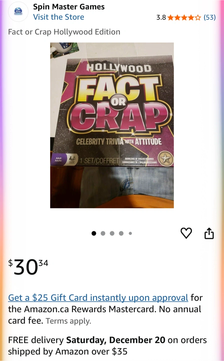 Brand new, still-in-shrink-wrap Hollywood Fact or Crap trivia game!