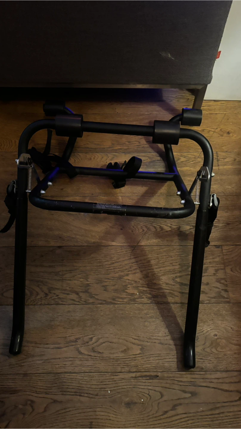 Selling a black bike rack in used condition. It's perfect for transporting your bikes safely and securely. Please take a look at the pictures for details on its condition