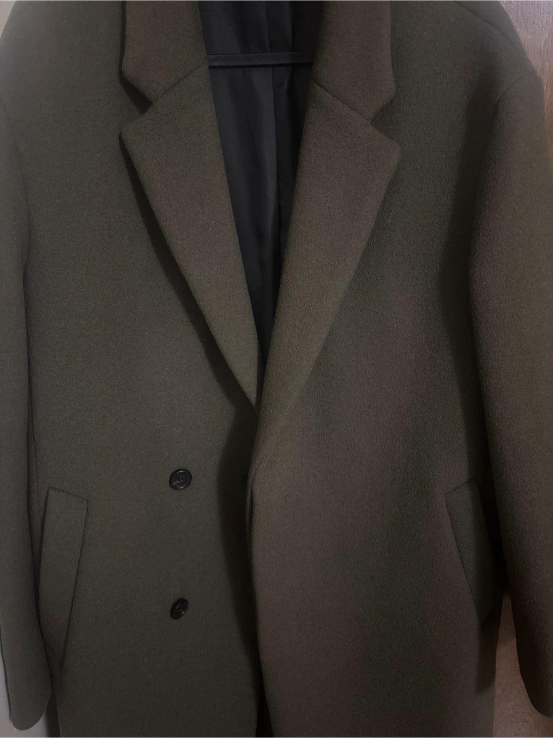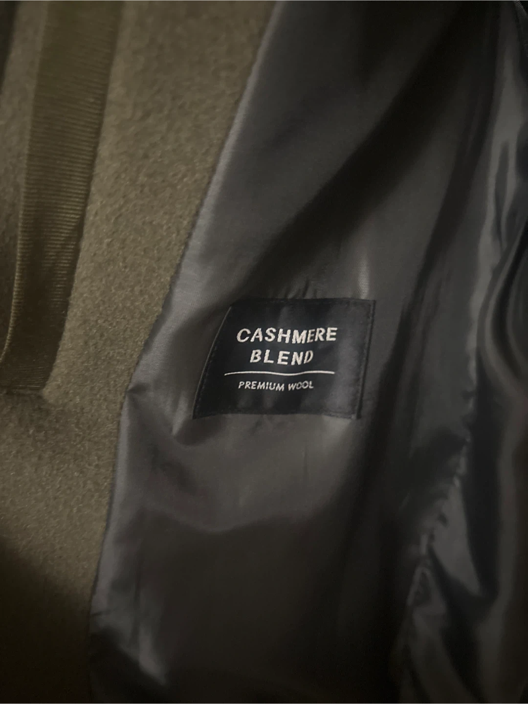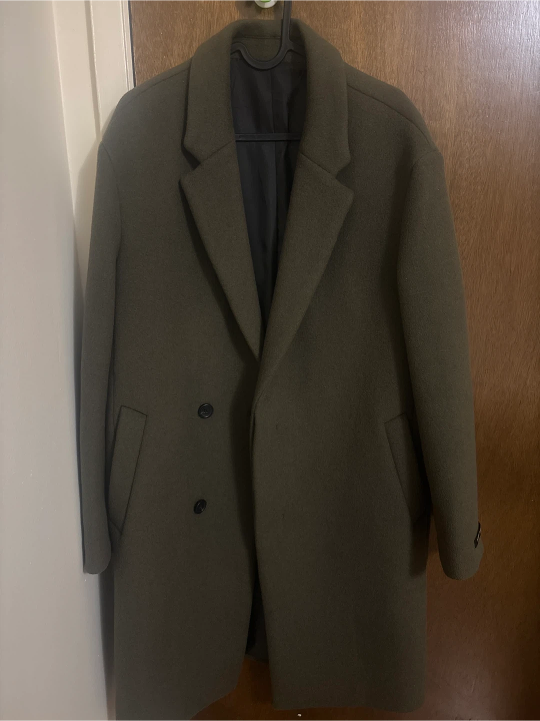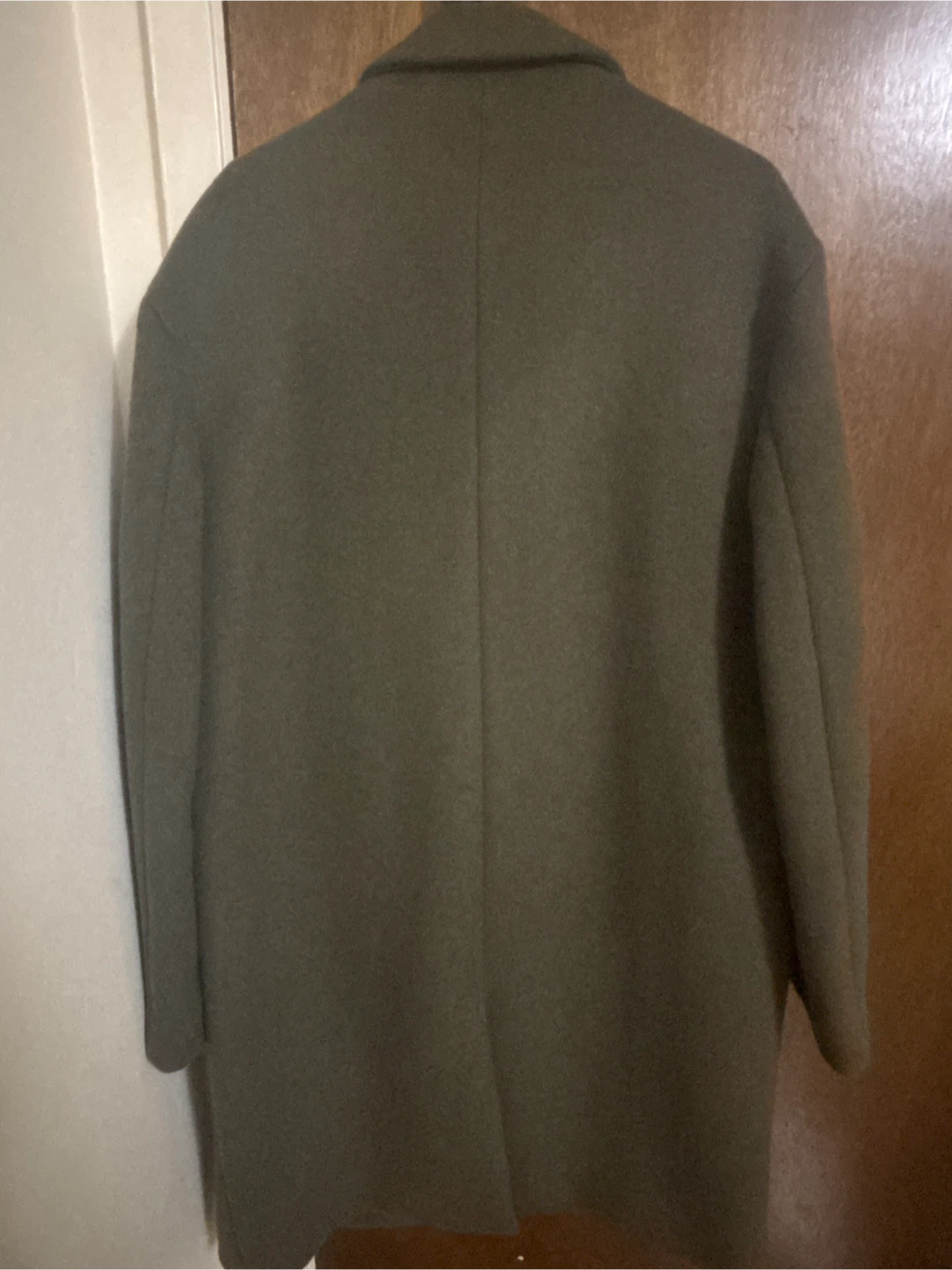 Here's a lovely olive green coat made with a cashmere blend and premium wool! It's in great condition and ready for a new owner.
