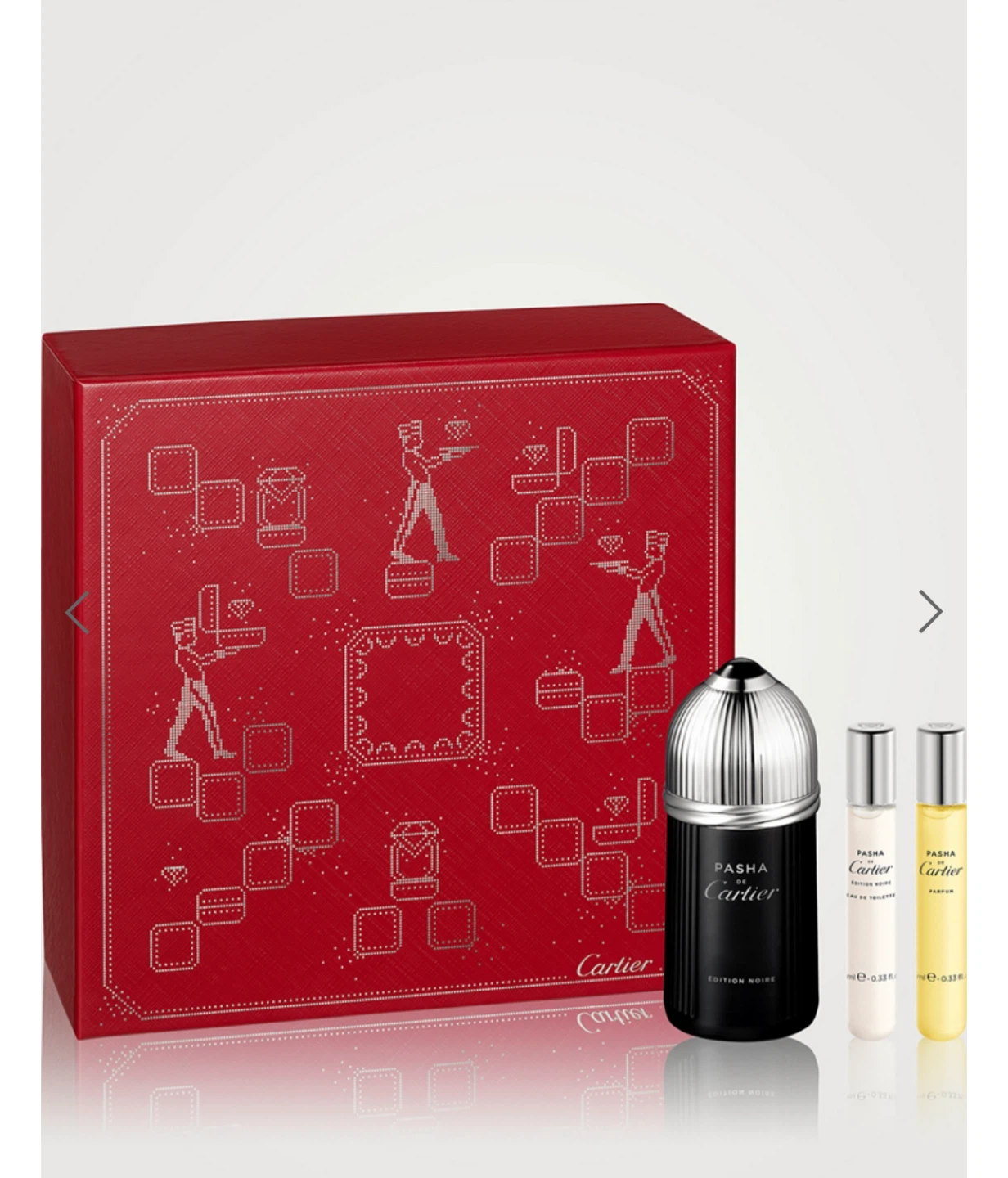 An elegant Cartier fragrance discovery set with festive decoration for you or your loved ones. This set contains a Eau de Toilette and two Purse Sprays from the Pasha de Cartier collection.