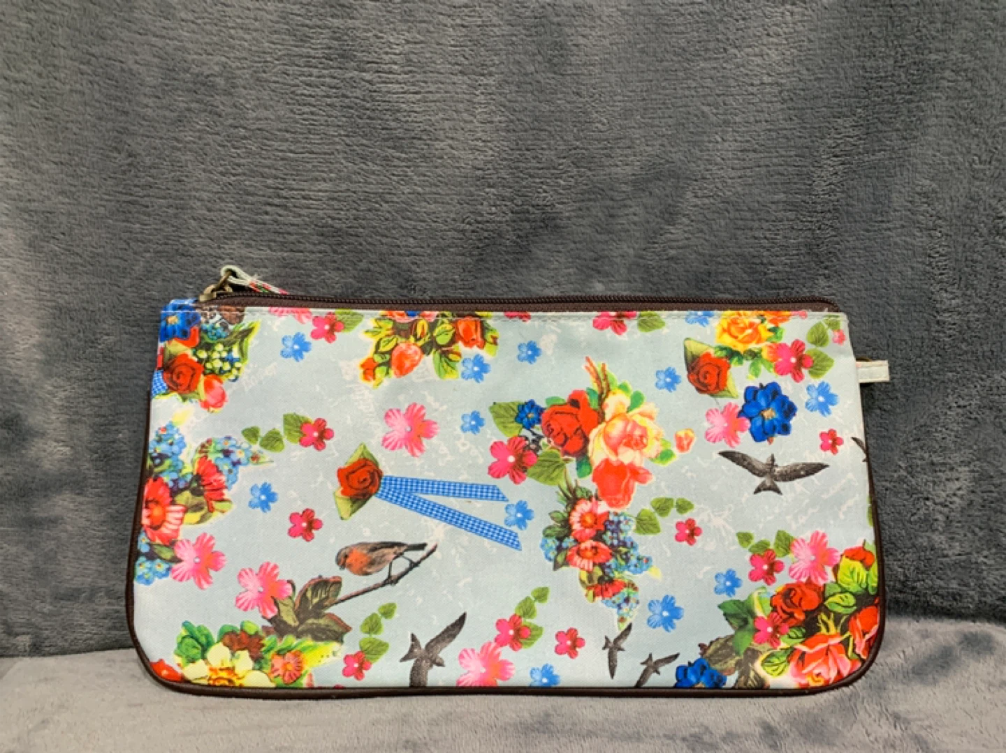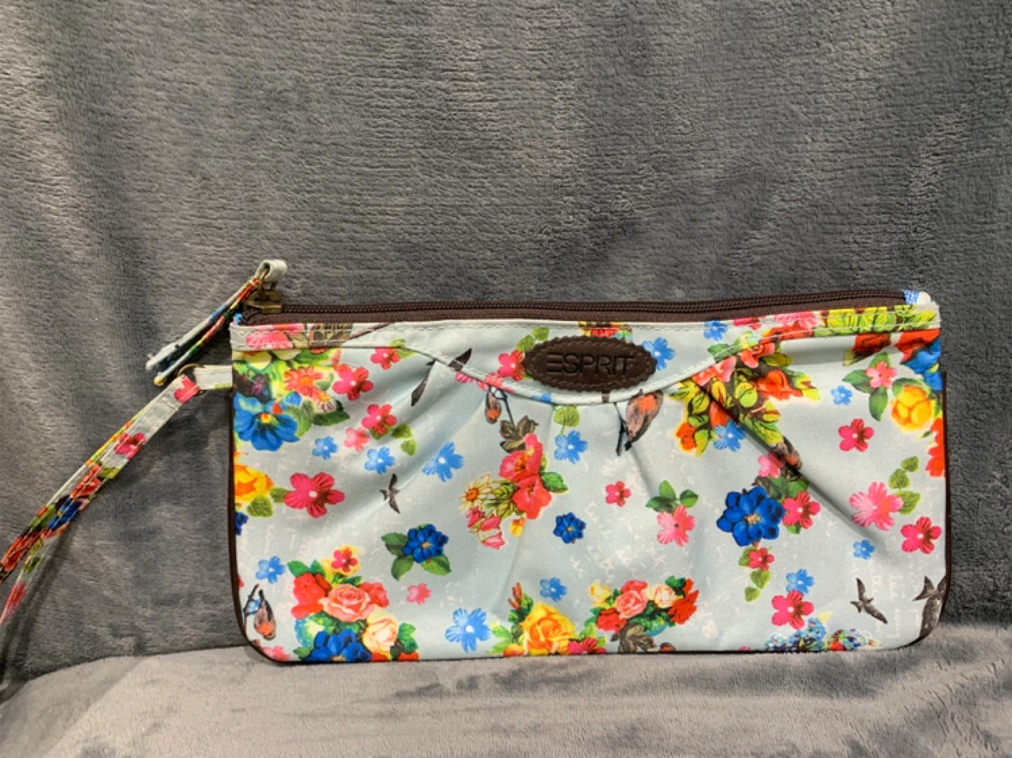 This is a cute Esprit wristlet pouch with a colourful floral design. It's perfect for carrying your essentials!