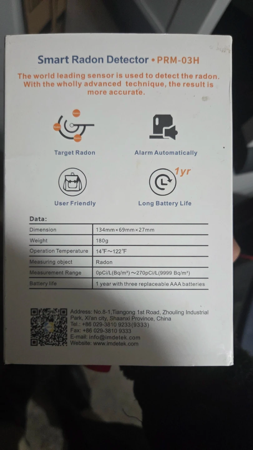 - Detects radon with advanced sensor technology