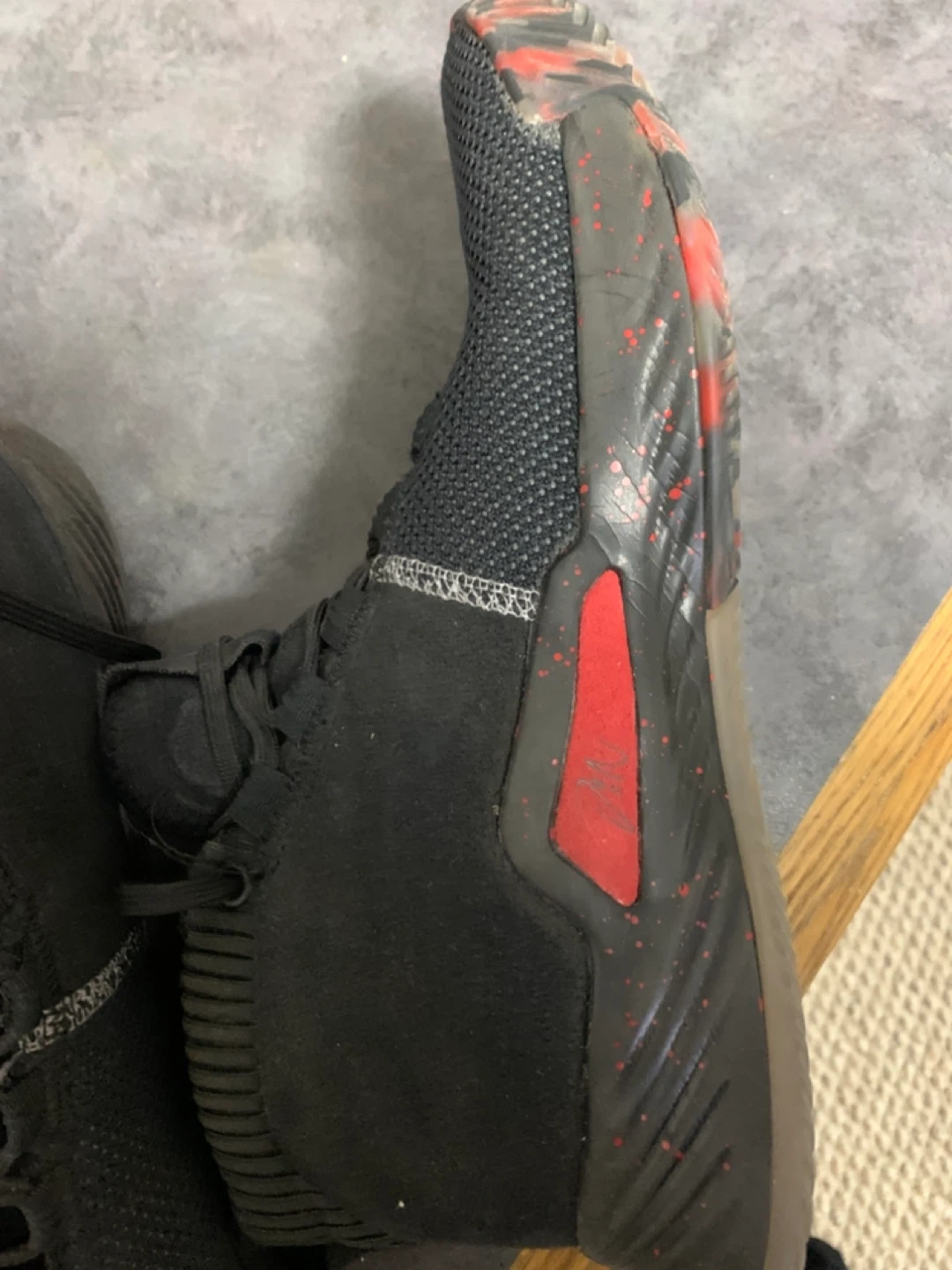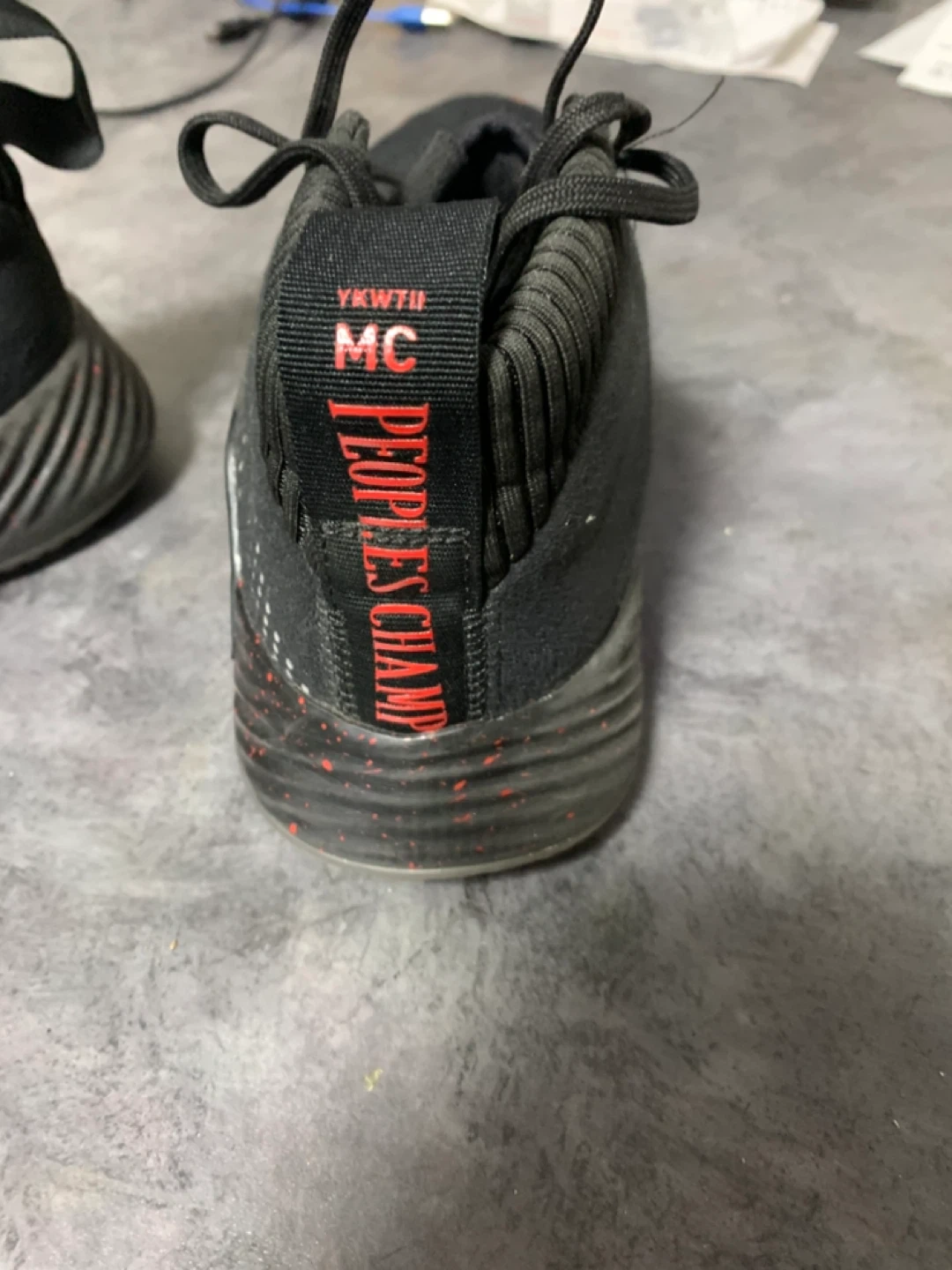 Adidas Dame 5 basketball shoes in size US 8. They are black with red detailing. The shoes are in good condition, as shown in the pictures. "People's Champ" is written on the back.size 8