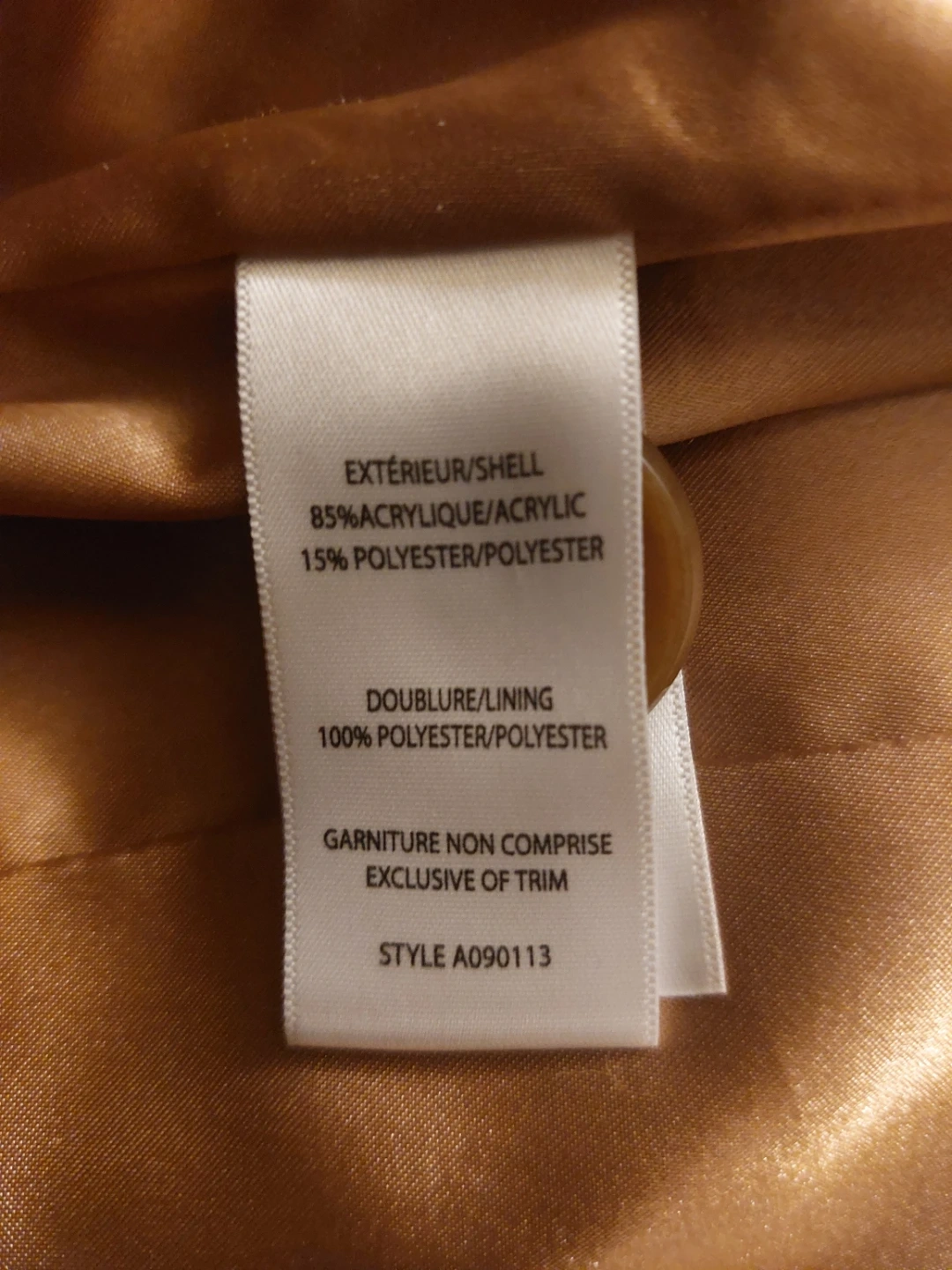 - Exterior - 85% acrylic and 15% polyester; Lining - 100% polyester