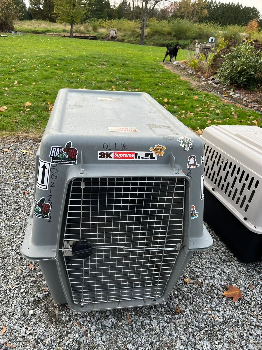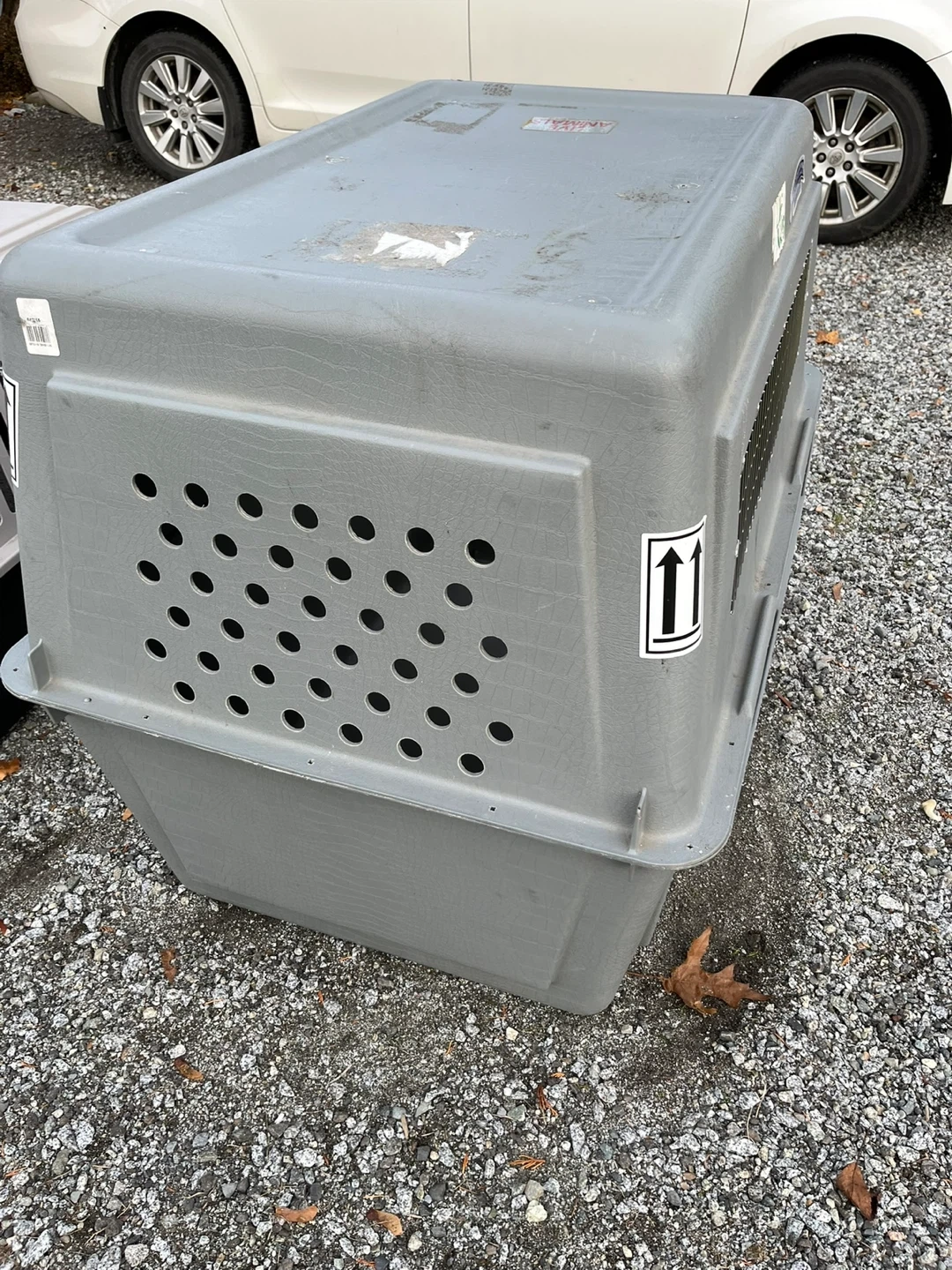 XL crate suitable for big dogs. Fits my 90lb dog no problem. This crate can be used on flights. There are stickers on the crate but otherwise in good condition. Very sturdy and heavy duty. Local delivery available.