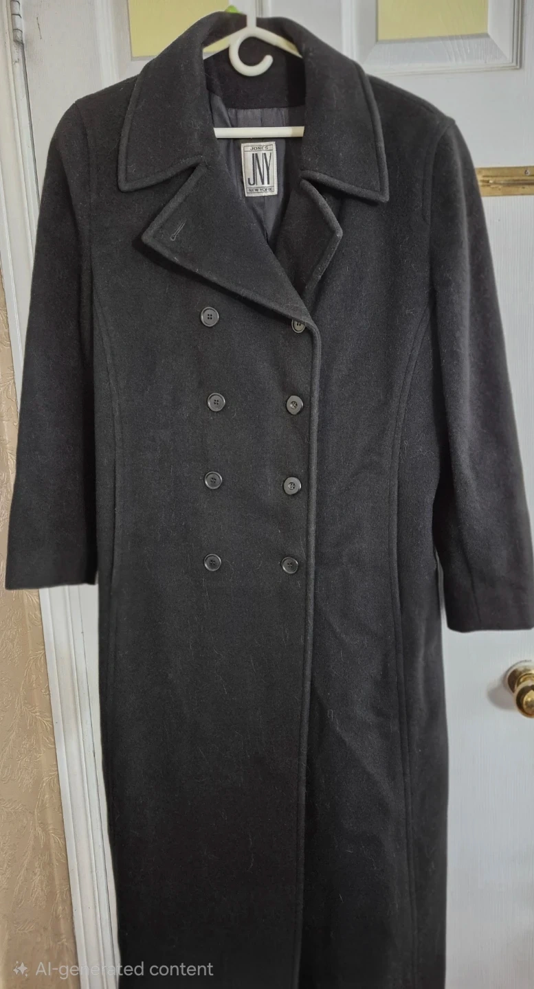 Selling a JNY Modern coat in black. It's a pure wool and has a classic double-breasted design. Perfect for staying warm this winter!